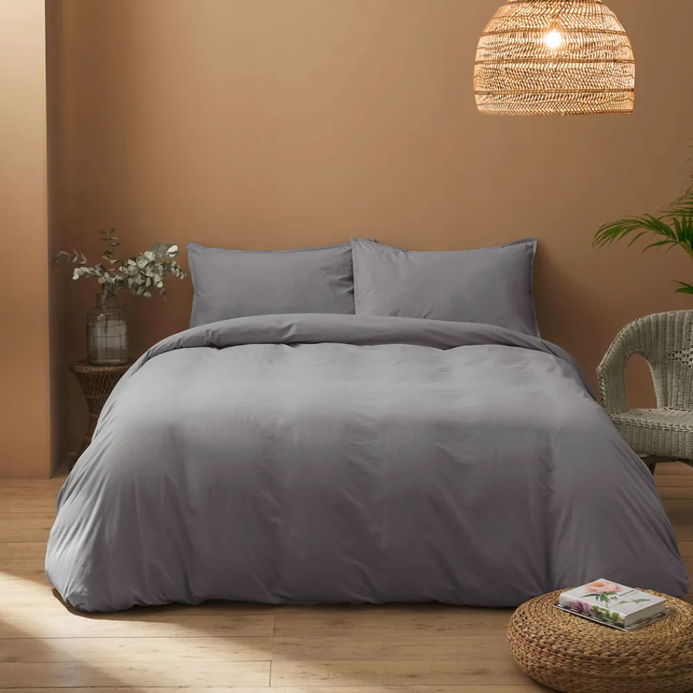 Bettbezug-Set aus reiner, stückgefärbter Baumwolle.
