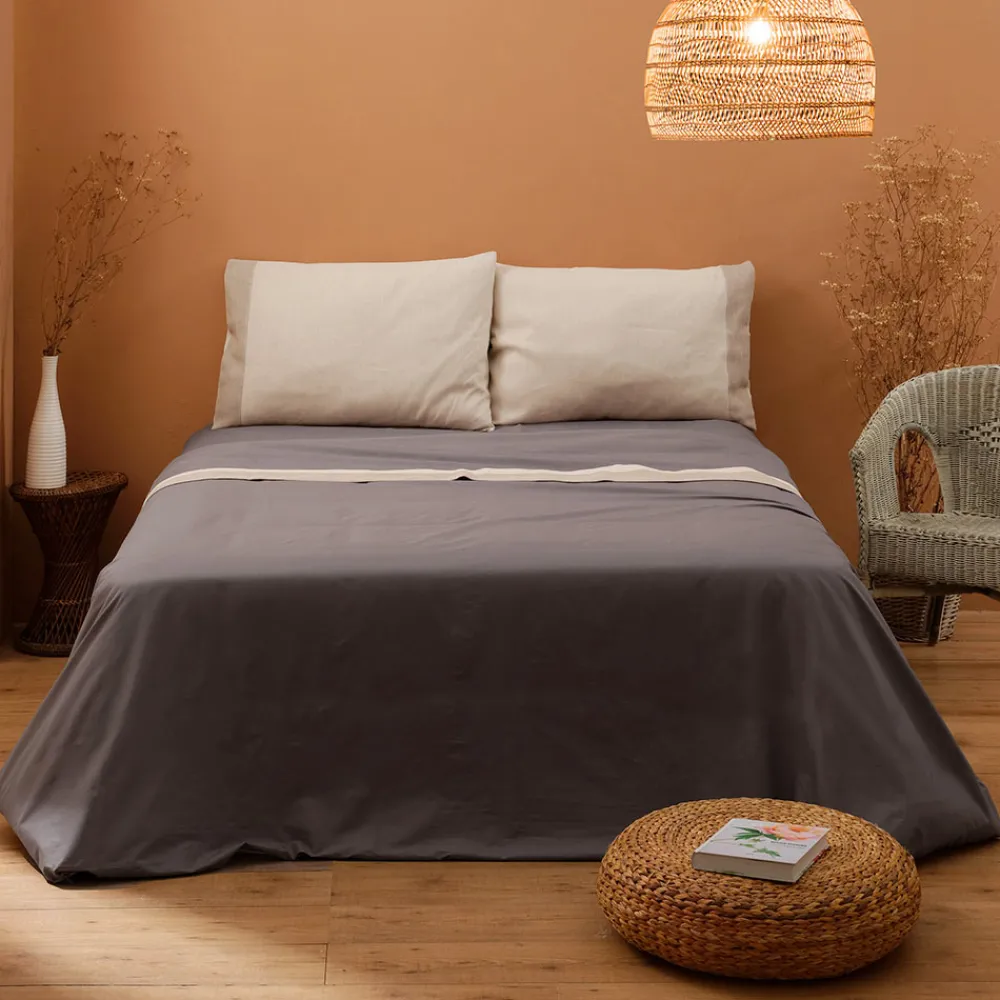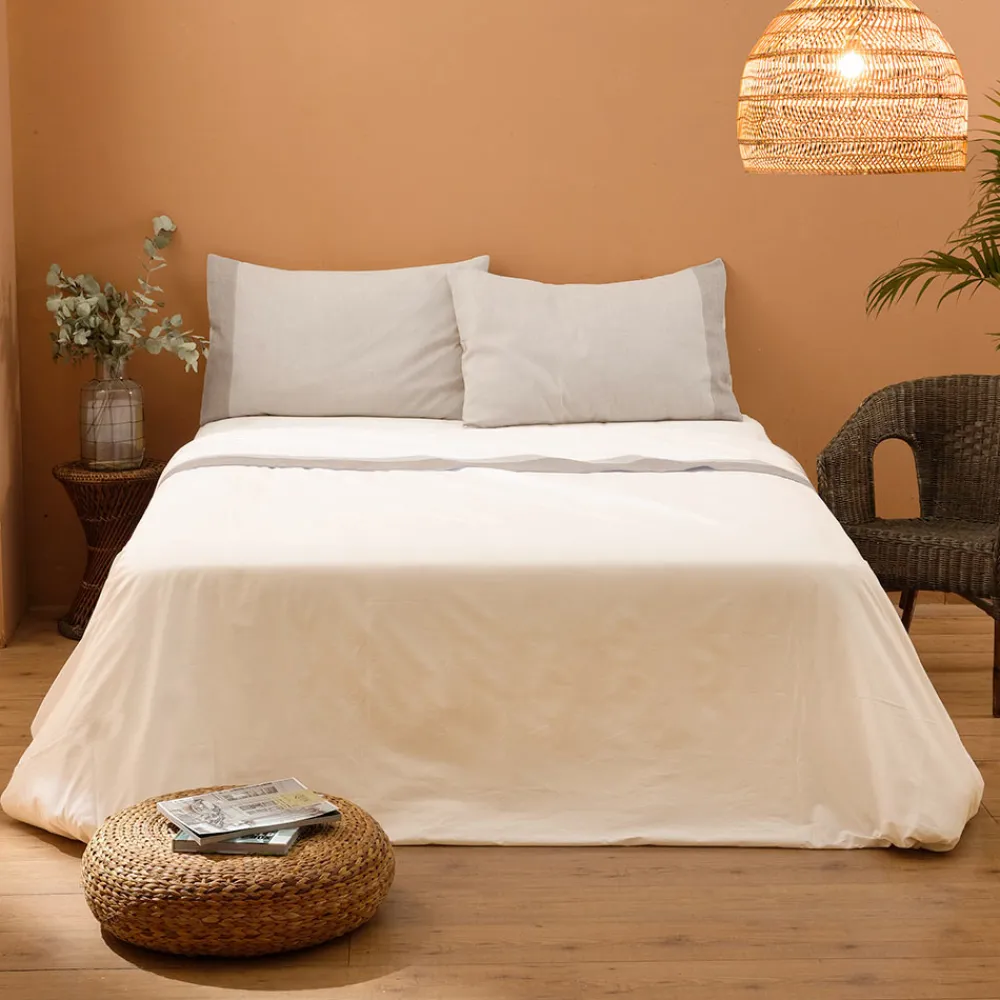 Doppelbettset aus 90 % Baumwolle mit Fadenzahl 160, 10 % Leinen.