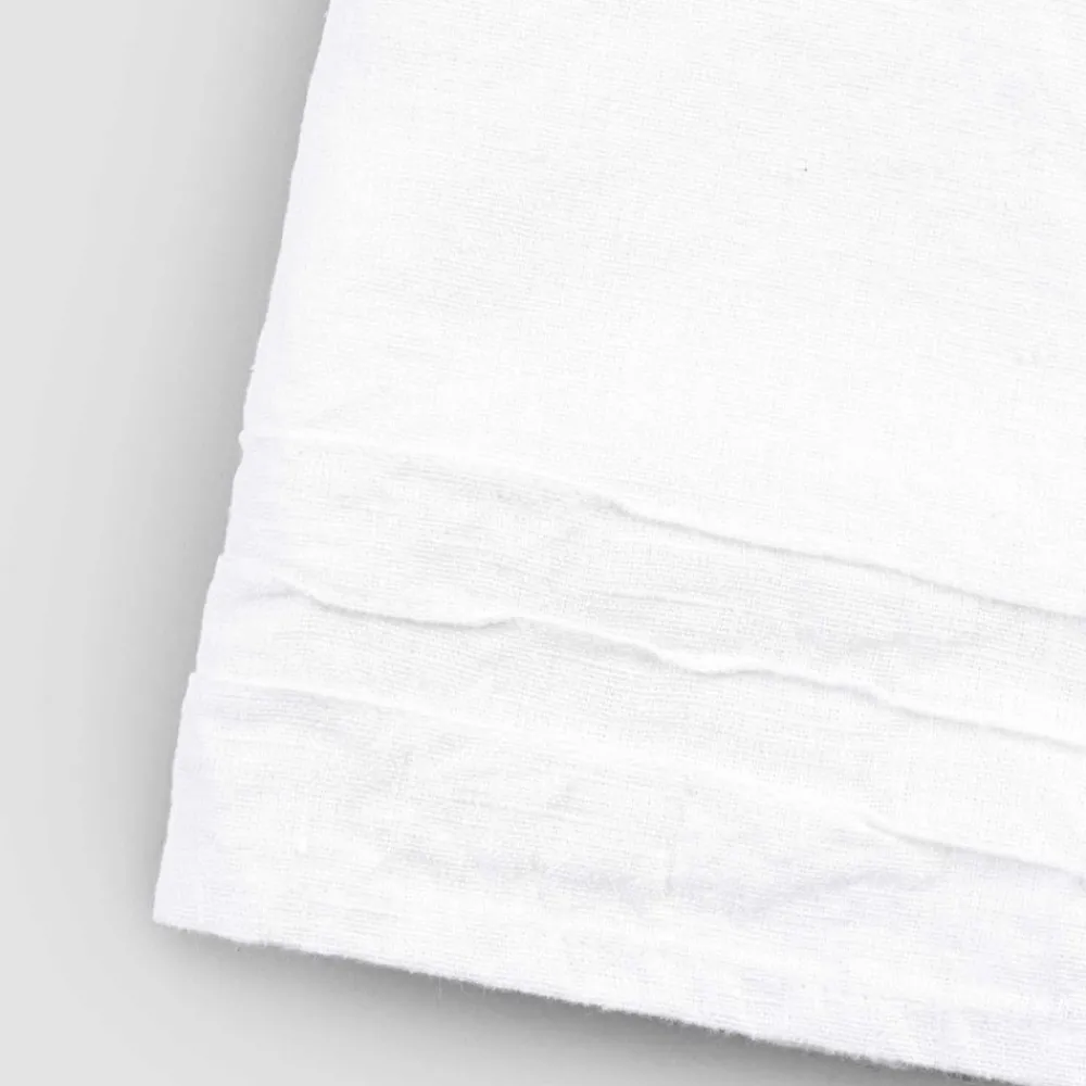 Der Wert der Tradition verbindet den modernen Lebensstil mit dem weißen Badetuch aus schwerem Leinen mit einem genähten Faltenrand.