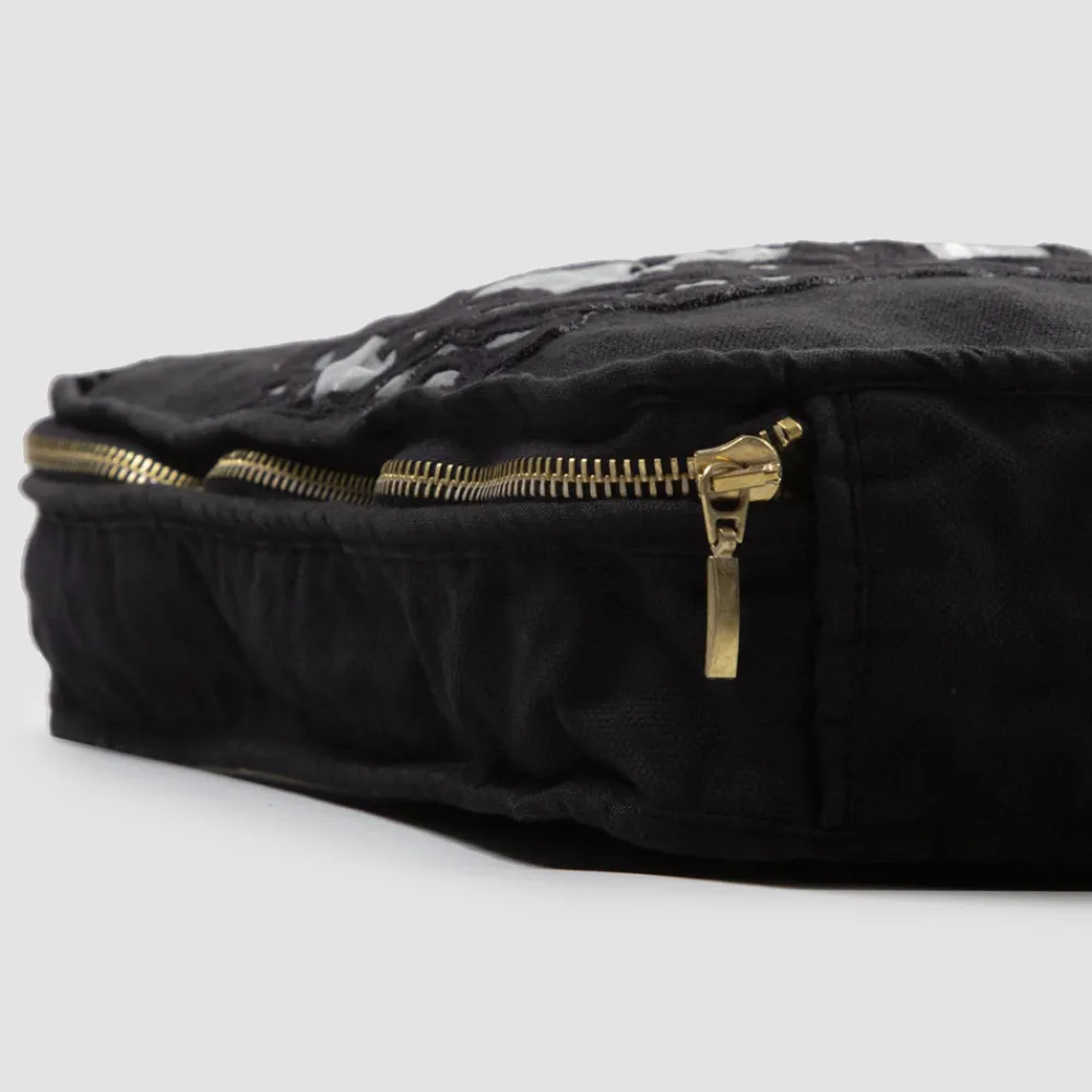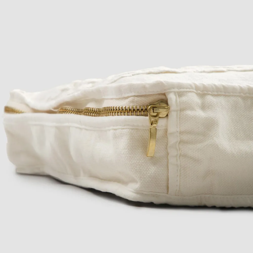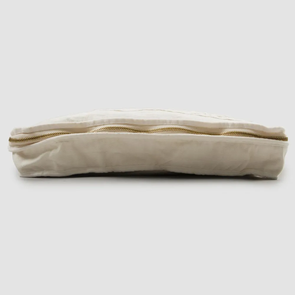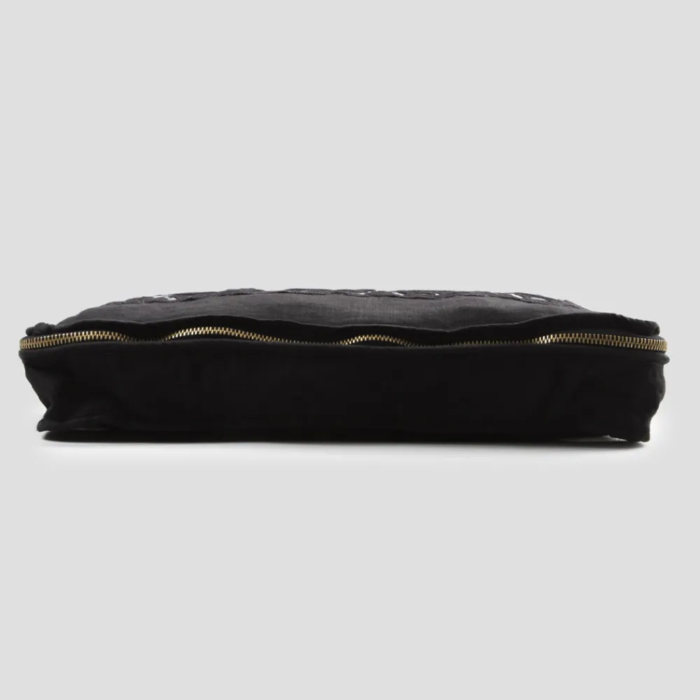Der Wert der Tradition verbindet den modernen Lebensstil mit dieser großen rechteckigen Kosmetiktasche aus Leinen und Baumwolle mit Farnese-Spitze und Reißverschluss.