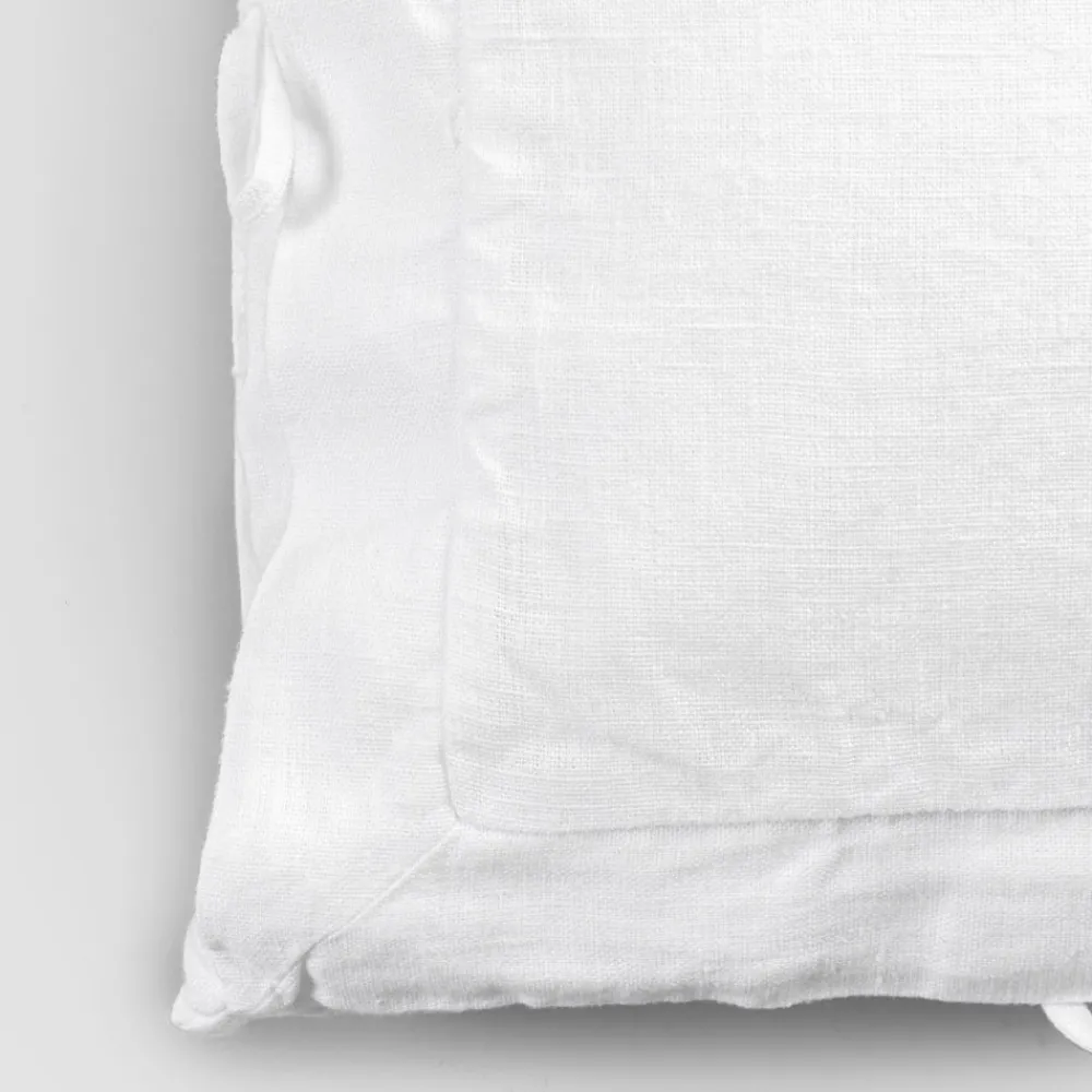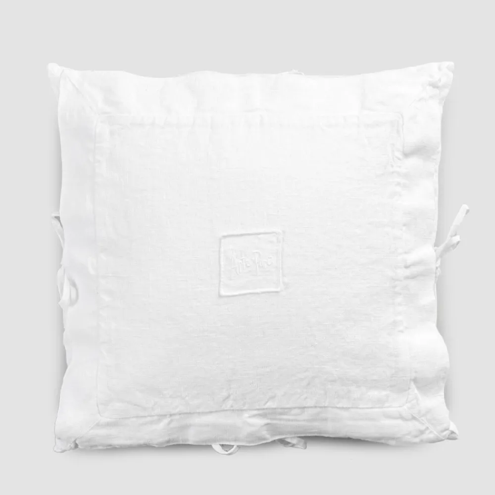 Dekorativer Kissenbezug aus weißem Leinen mit quadratischen Schnürsenkeln, hergestellt in italienischer Qualität.