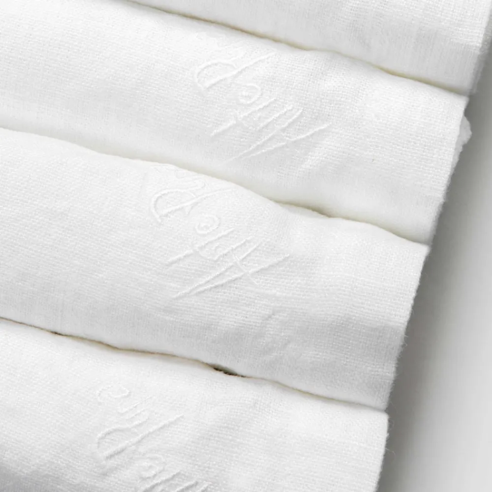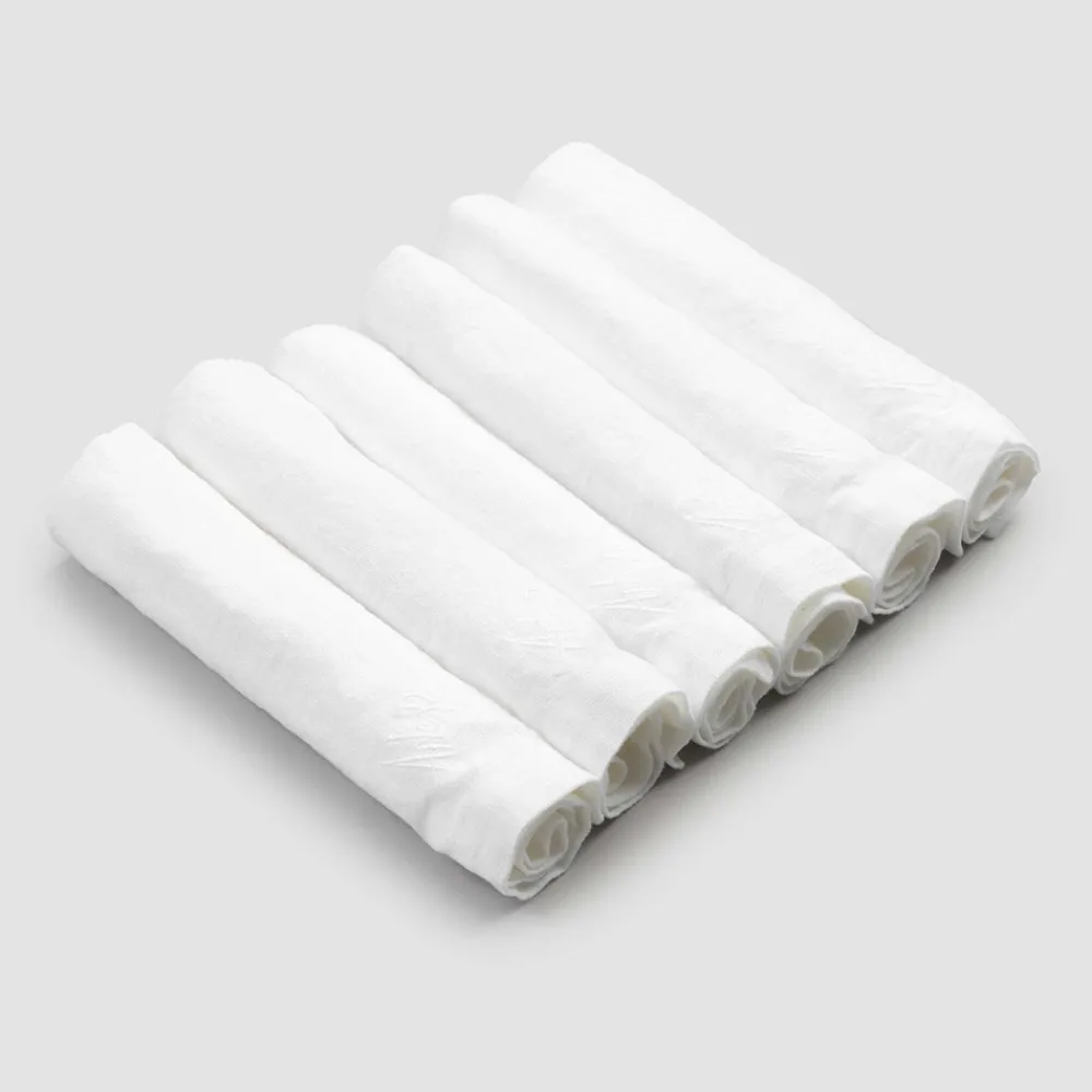 Der Wert der Tradition wird mit dem modernen Lebensstil in diesem Service von 6 schweren weißen Leinenservietten mit Falzkante kombiniert.