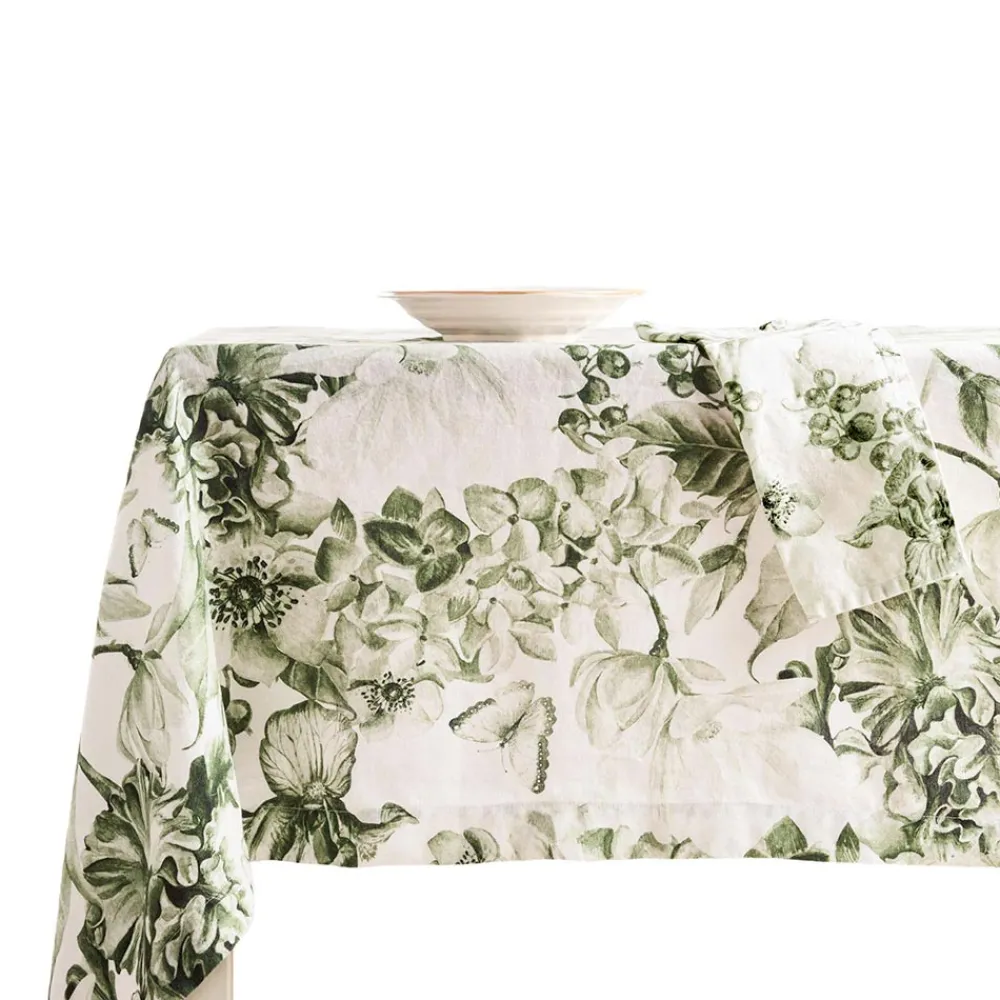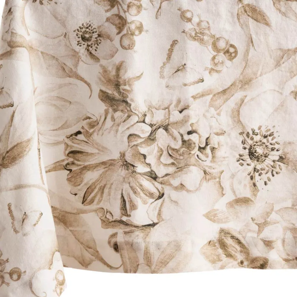 Bedruckte und gewaschene Tischdecke aus reinem Leinen mit üppigem Blumenmuster