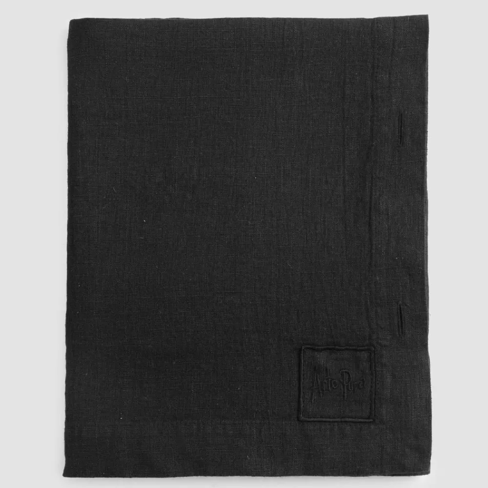 Modulare Leinentischdecke mit Perlmuttknöpfen, handgefertigte Qualität made in Italy.