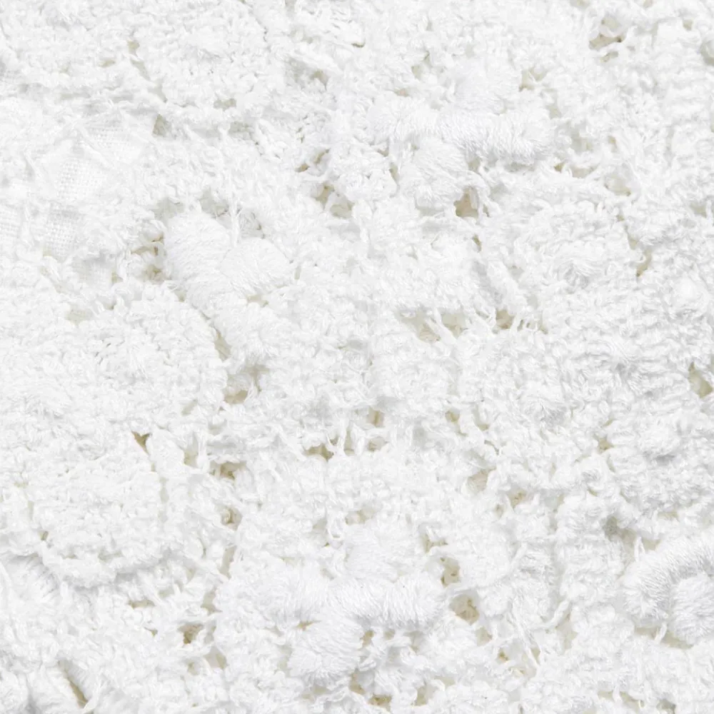 Der Wert der Tradition wird mit dem modernen Lebensstil in dieser weißen Leinentischdecke kombiniert, die mit einem Baumwollspitzenschuss verziert ist.