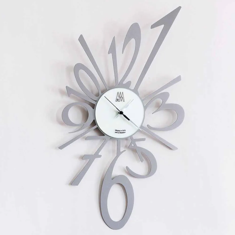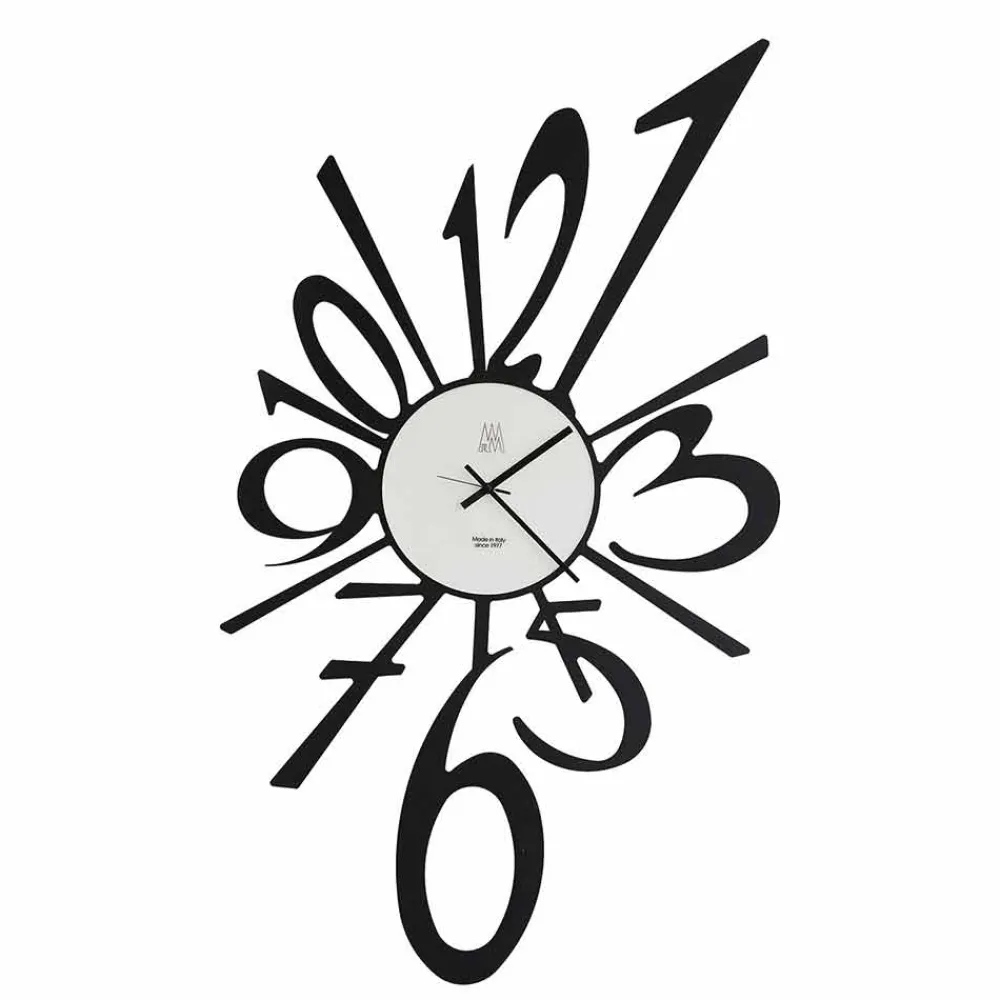 Wanduhr in modernem Stil, handgefertigt in Italien aus Eisen in schwarz lackiert oder aluminium-farbe.