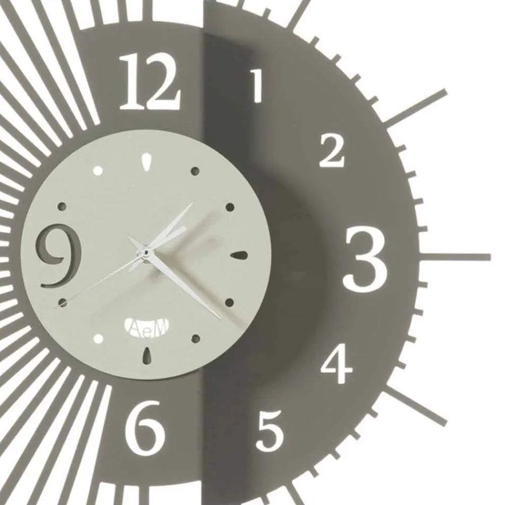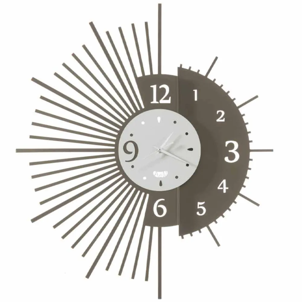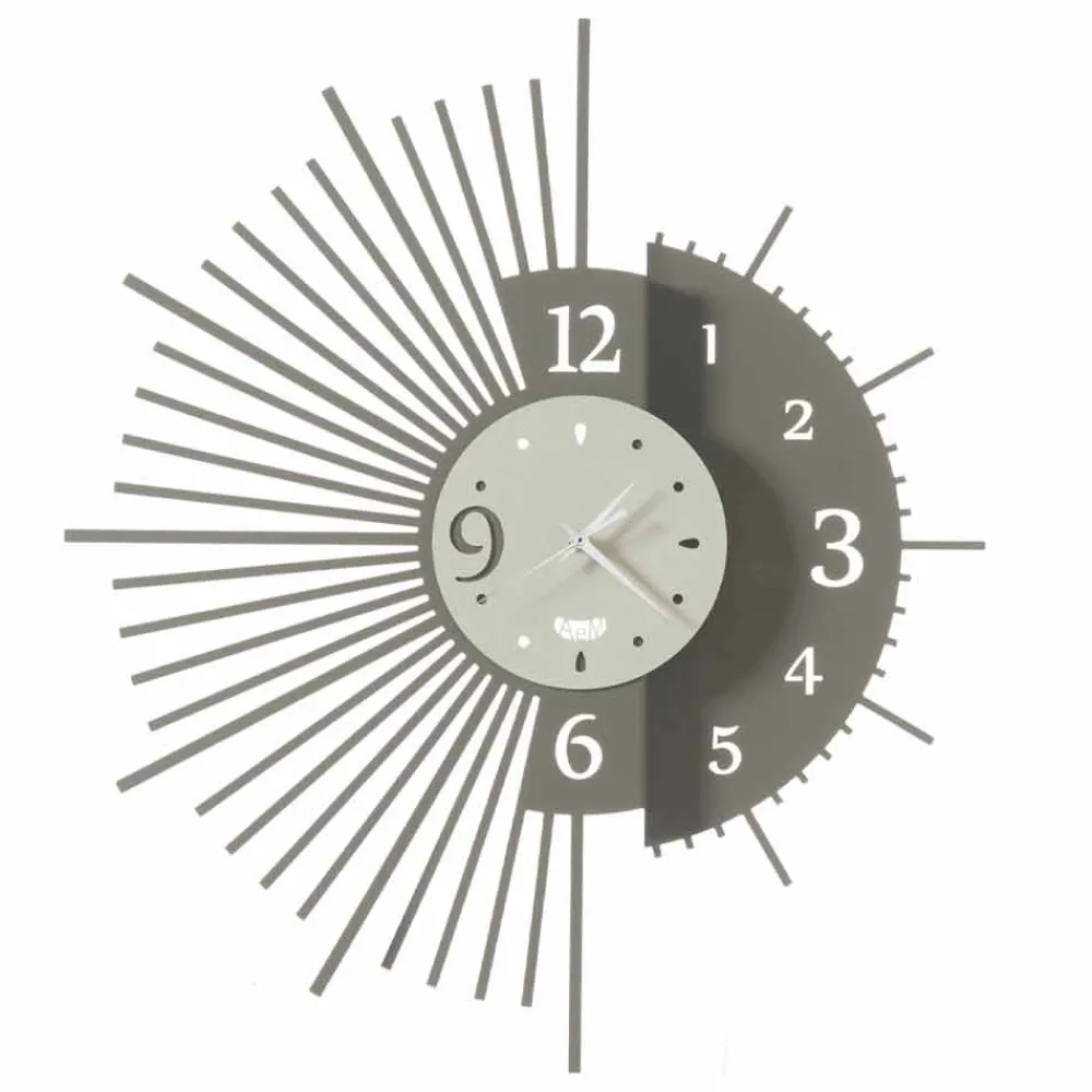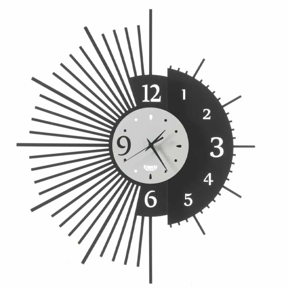 Diese Wanduhr wird vollständig in Italien von handwerklichen Fachleuten hergestellt, die sich um jedes Detail kümmern, um ein Produkt zu gewährleisten, das dank der verwendeten Techniken und Materialien einzigartig und unwiederholbar ist: Eisen . Das Eisen ist essentiell, aber widerstandsfähig. Es ist lasergeschnitten und mischt sich mit Farbe, um eine leichte und zeitgemäße Stimmung wiederherzustellen, die jedes Mal überraschen kann. Jedes Stück zeichnet sich durch die Besonderheit der Verwendung ungewöhnlicher Formen aus, die dem Objekt Design und Modernität verleihen. Es eignet sich perfekt für die unterschiedlichsten Bereiche des Hauses wie Küche, Wohnzimmer oder Schlafzimmer.
