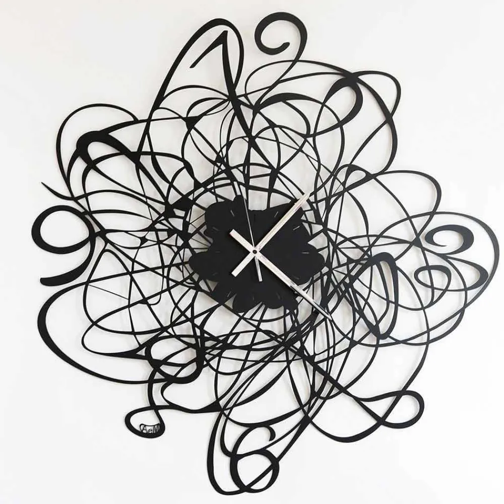 Wanduhr in modernem Design aus lackiertem Eisen in schwarz oder weiß, handgefertigt in Italien.