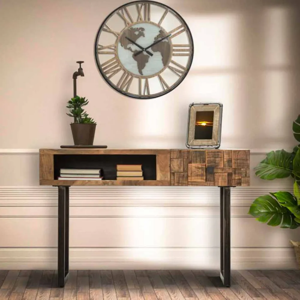Moderne Wanduhr aus Eisen und MDF 60 cm.