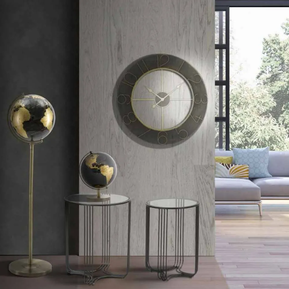 Runde Wanduhr Durchmesser 70 cm modernes Design aus Eisen und MDF.