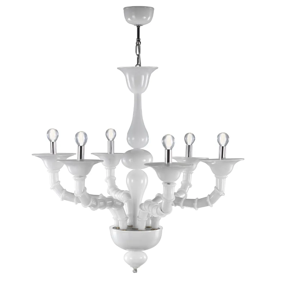 Kronleuchter aus weißem Rezzonico-Glas mundgeblasen in Venedig, klassischer Stil.