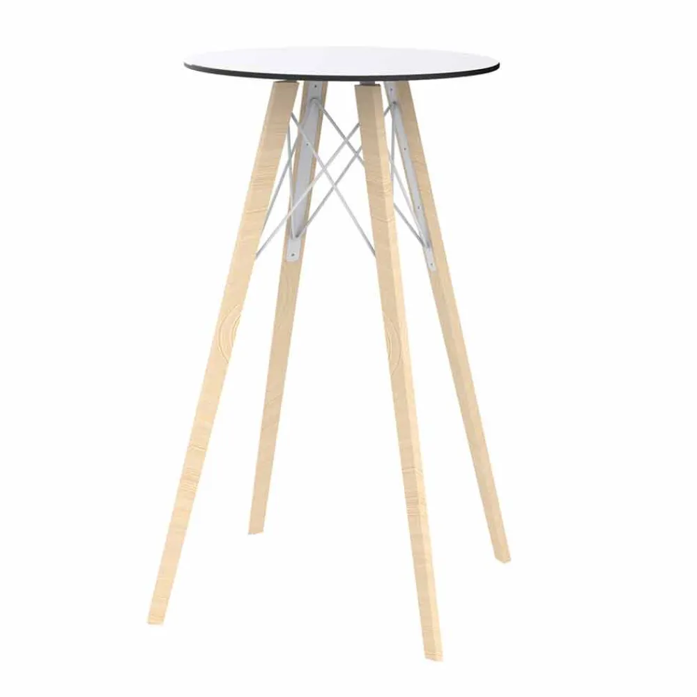 Runder Stehtisch aus Eschenholz und weißer oder schwarzer HP-Platte und 2 Größen, 4 Stück.