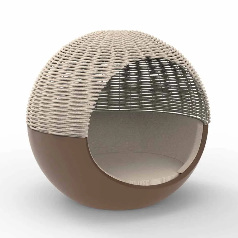Dieses Tagesbett im Freien zeichnet sich durch seine kreisförmige Form und das um 360 ° drehbare System aus, auf dem die Basis ruht, was eine vollständige Drehung um die eigene Achse ermöglicht.