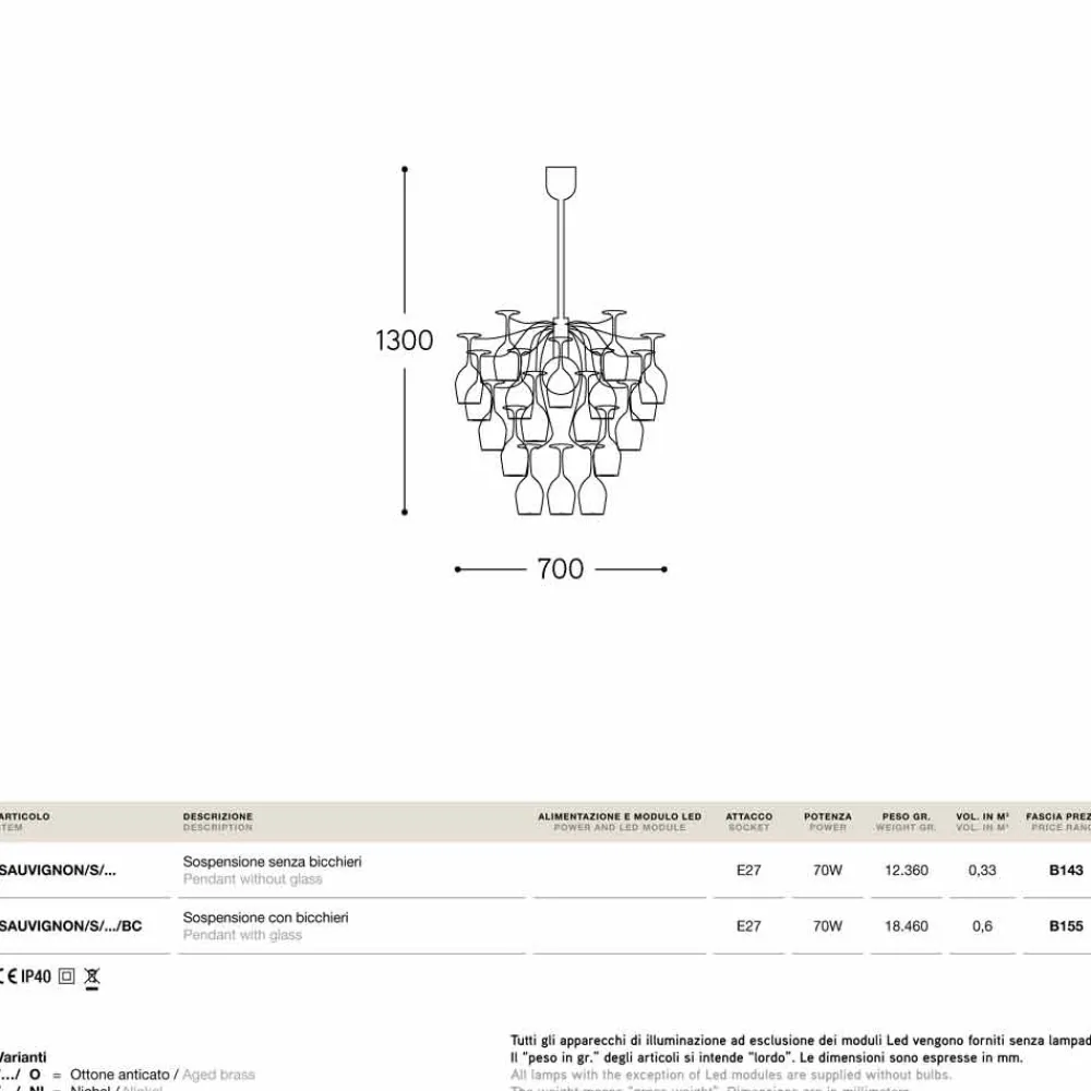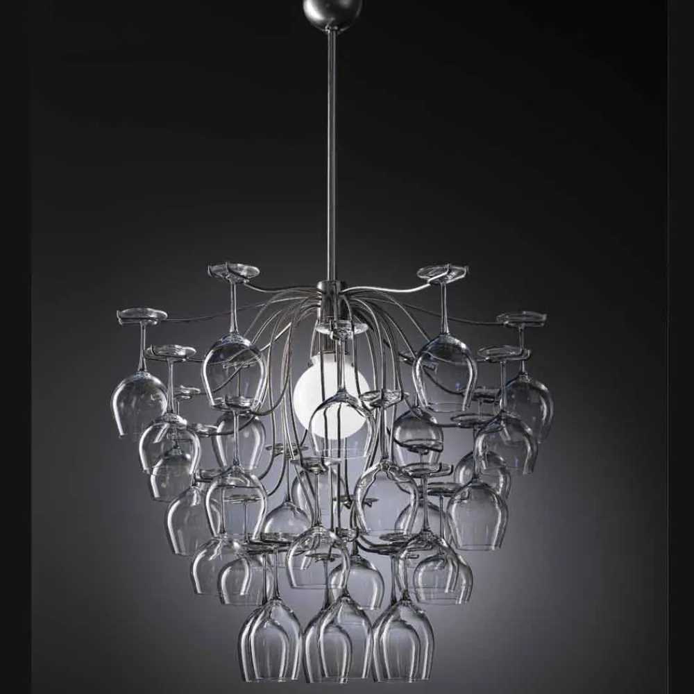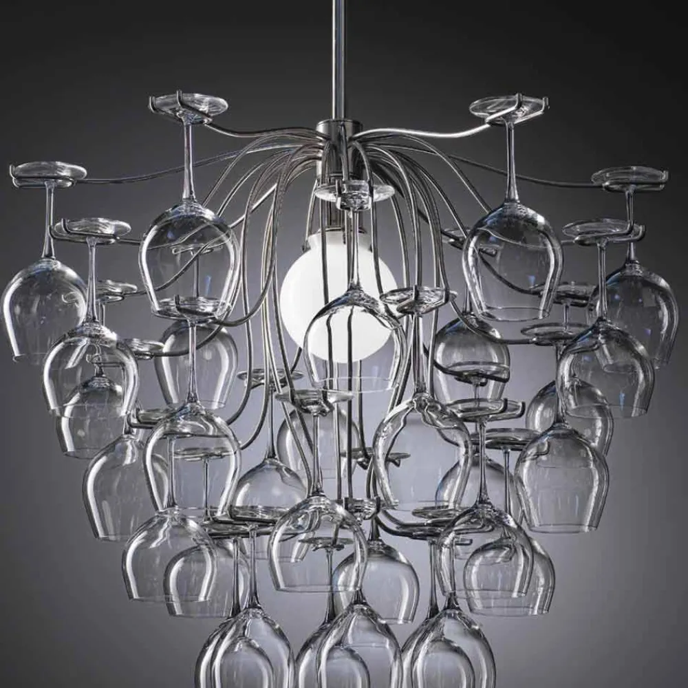 Moderne Design Pendelleuchte mit 30 Gläsern Sauvignon von Aldo Bernardi .