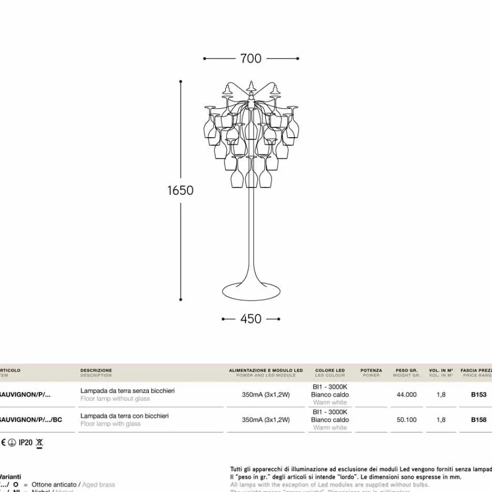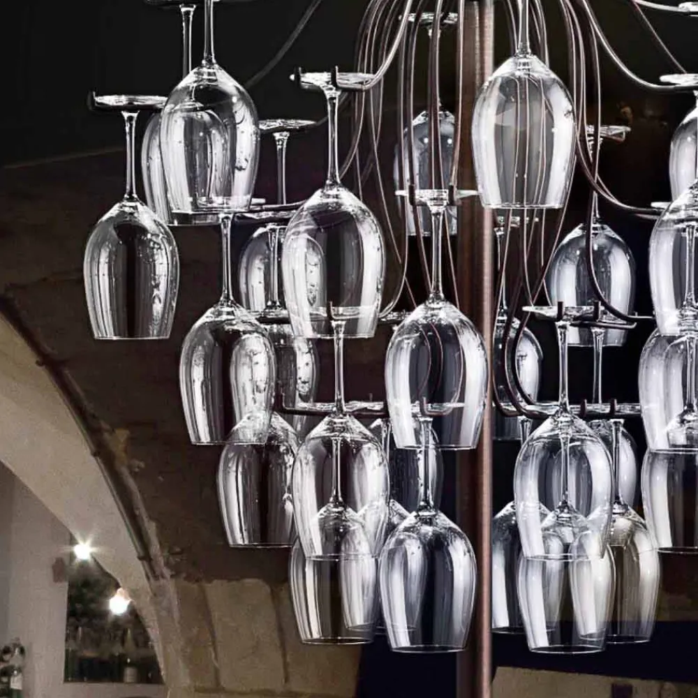 Designer Stehleuchte mit 30 Gläsern Sauvignon von Aldo Bernardi .