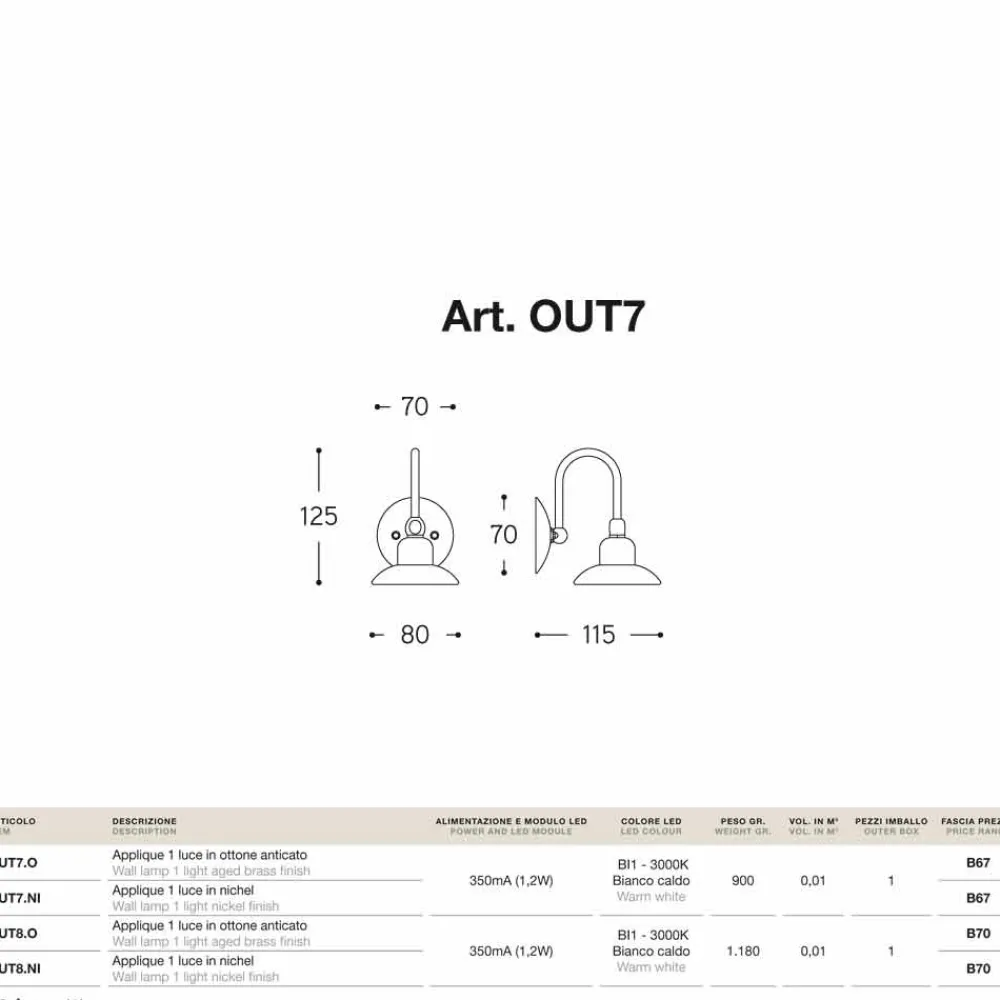 Outdoor Designer Wandleuchte Giulietta Sprint – Small von Aldo Bernardi, aus Kupfer und Messing.
