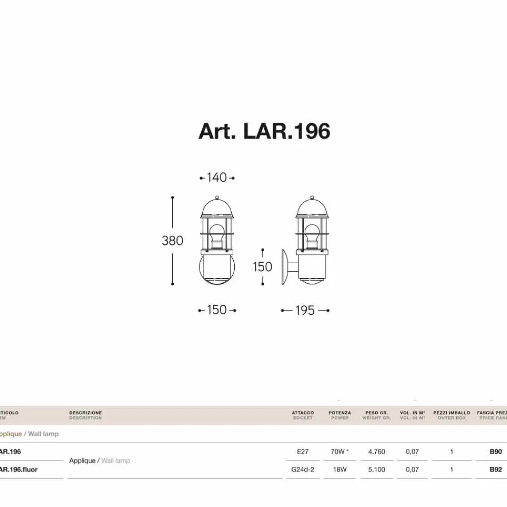Outdoor Designer Wandleuchte Attila von Aldo Bernardi, aus antikem Kupfer und antikem Messing, IP 44.