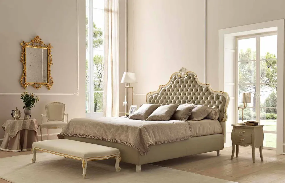 Das Doppelbett Chantal wird dank seines reichen und wichtigen Designs zum Protagonisten des Schlafzimmers. Einladend und komfortabel, bietet es einen Schlafbereich ohne Mode und Konditionierung. Das Kopfteil ist das Schlüsselelement des gesamten Designs und zeichnet sich durch eine feine Capitonné-Verarbeitung aus. Eine Rückkehr zur klassischeren Vergangenheit, die Eleganz und umhüllende Linien offenbart.