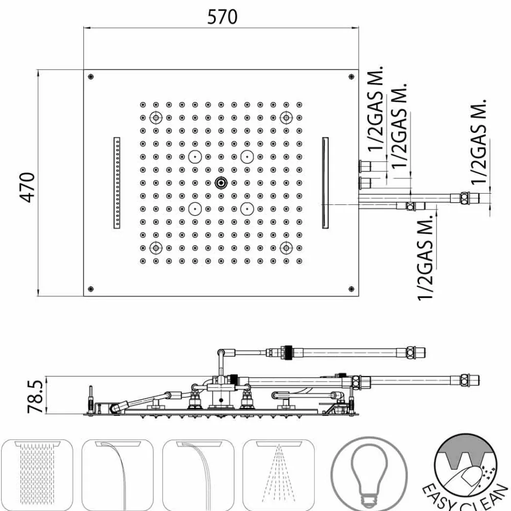 – Duschkopf Dream/4 mit vier Strahlfunktionen (Regen, Wasserfall, Regenwasserfal und Nebel) mit Licht LED weiß
