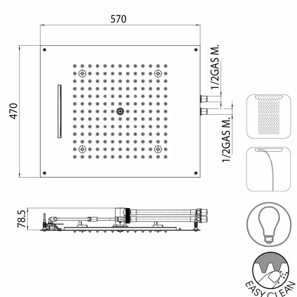 – Duschkopf Dream/2 mit zwei Strahlfunktionen (Regen und Wasserfall) mit Licht LED weiß