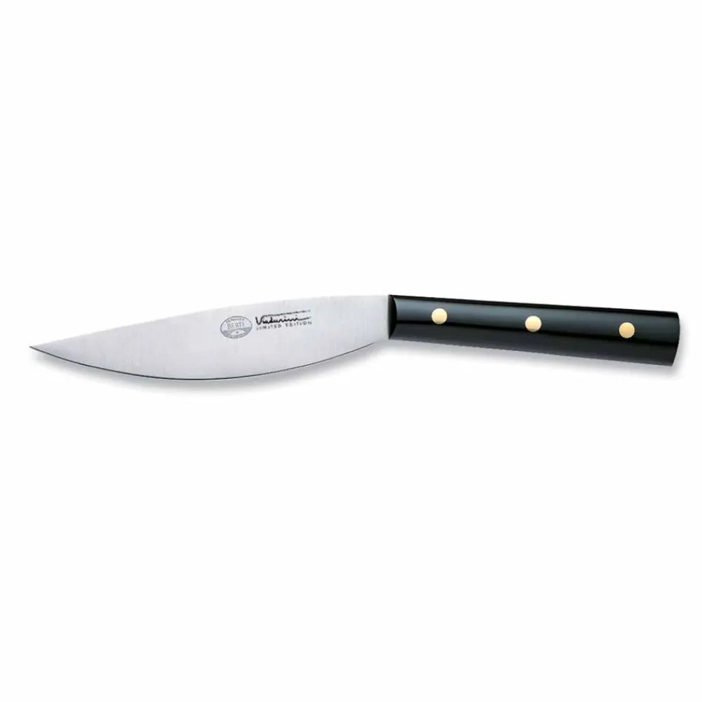 Die Klingen werden durch Laserschneiden aus Blechen aus speziellem Schneidstahl erhalten, was eine sehr hohe Qualität der Klinge ermöglicht (feine und geordnete Korngröße ohne Schmieden). Hergestellt mit einem vollen Zapfen, dh die Klinge ist ein einzelnes Stück, das den gesamten Griff kreuzt. Sie haben die Oberfläche der Satinklinge. In Scarperia, Italien, wird sie von Hand in kleinen Mengen und ohne Arbeitsteilung hergestellt. Wer sie beginnt, beendet sie: Auf jeder Klinge finden Sie die Initialen des Handwerkers, der sie hergestellt hat. Die Wärmebehandlung umfasst auch eine Unterkühlung bei -80 ° C, um maximale Schnittkapazität und -dauer zu gewährleisten.