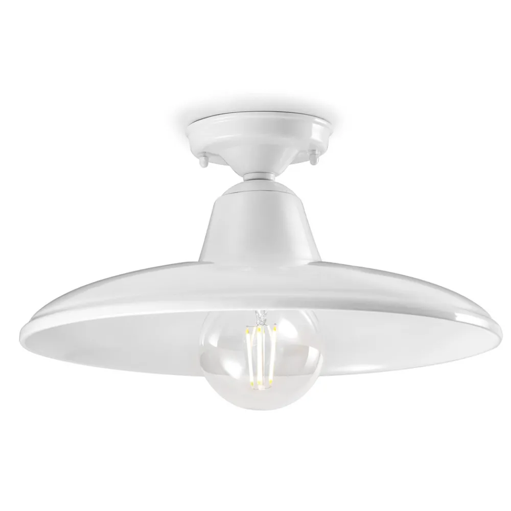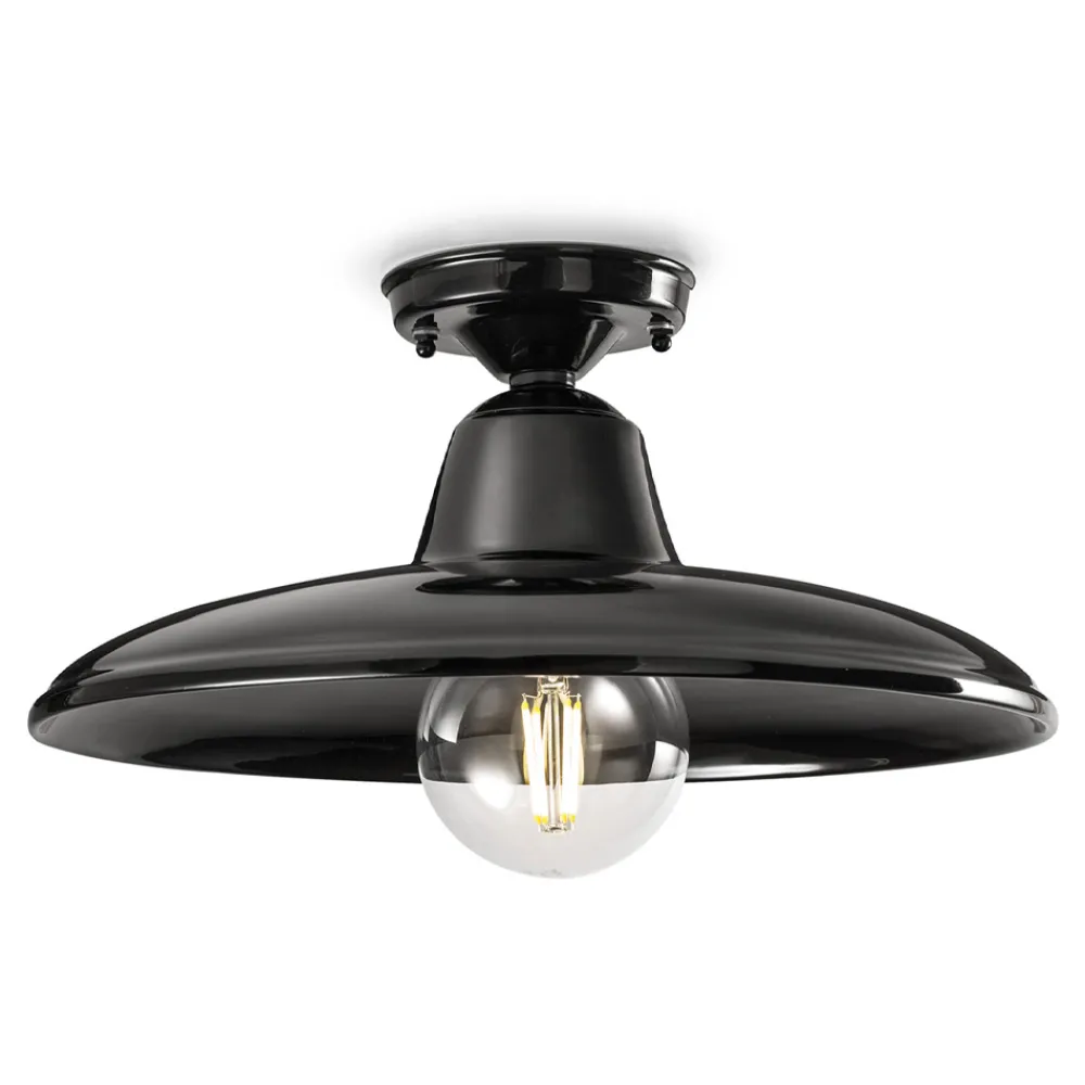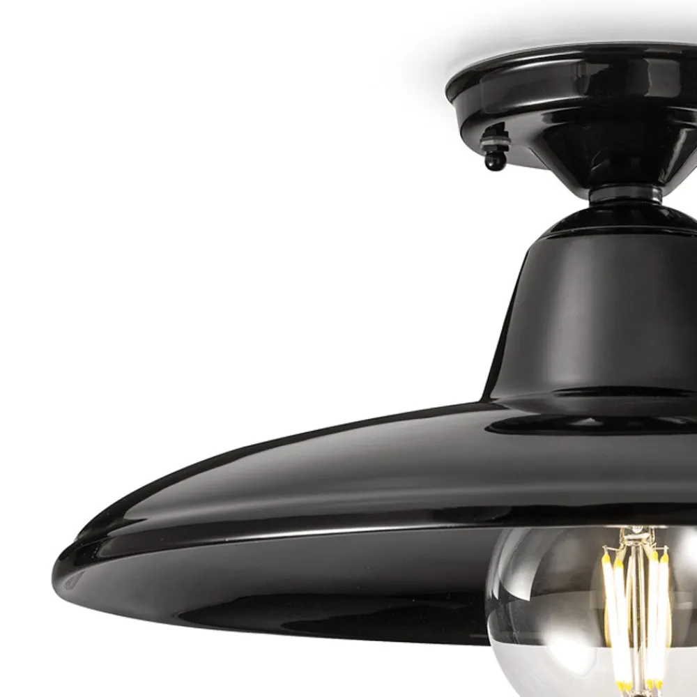 Schwarze oder weiße Deckenlampe aus Keramik und Eisen im Retro-Stil, hergestellt in Italien von Ferroluce.