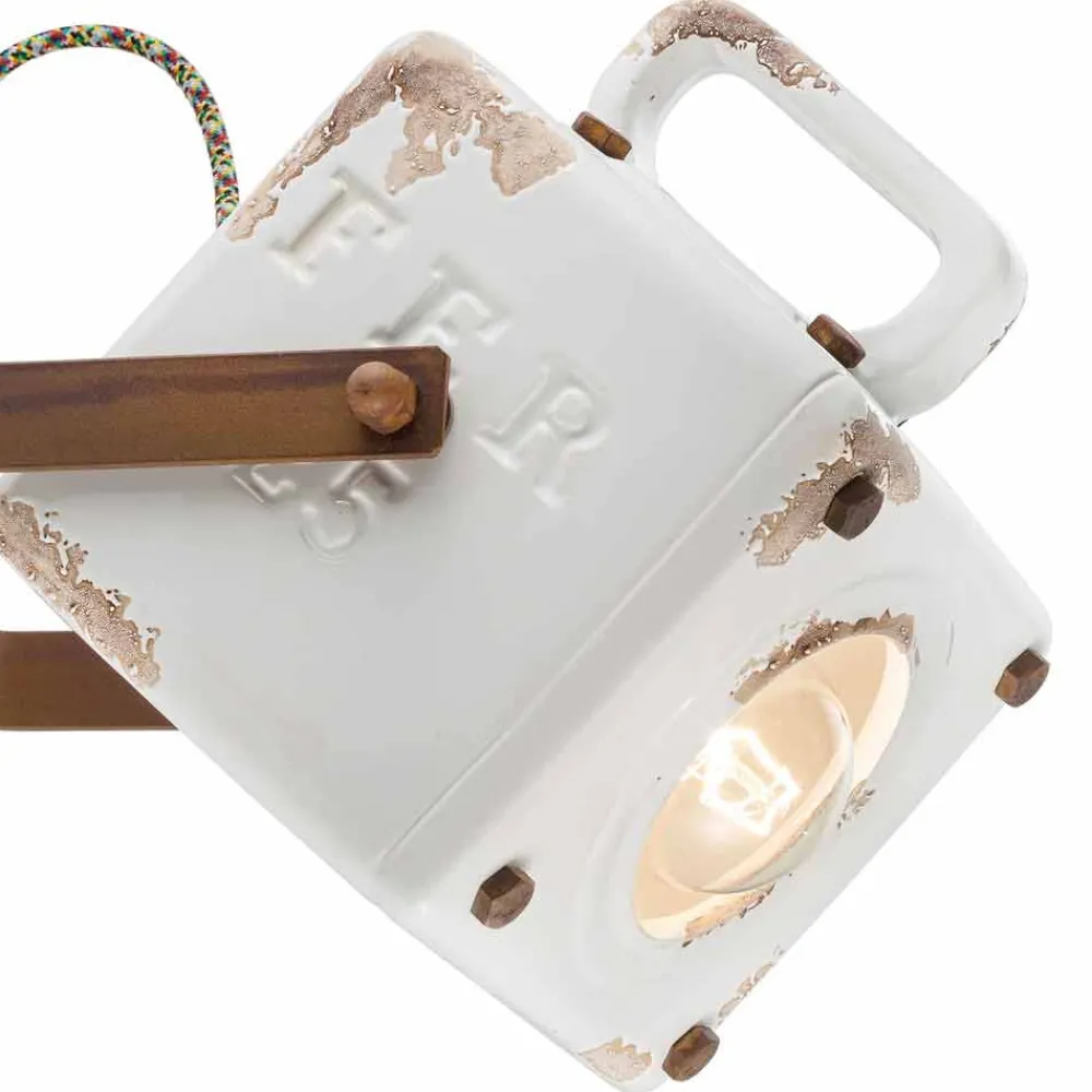 Eine weitere Besonderheit dieser Leuchte liegt in der handwerklichen Verarbeitung des Keramikdiffusors. Die Keramik ist in der Tat so dekoriert, als ob die Zeit ihren Weg gezeichnet hätte. Die Reproduktion der Erosion der Zeit in Kombination mit den glänzenden Oberflächen verleihen dieser Applikation diesen zusätzlichen Wert. Dieser abgenutzte Effekt verleiht Julia einen raffinierten Vintage-Industrial-Stil.