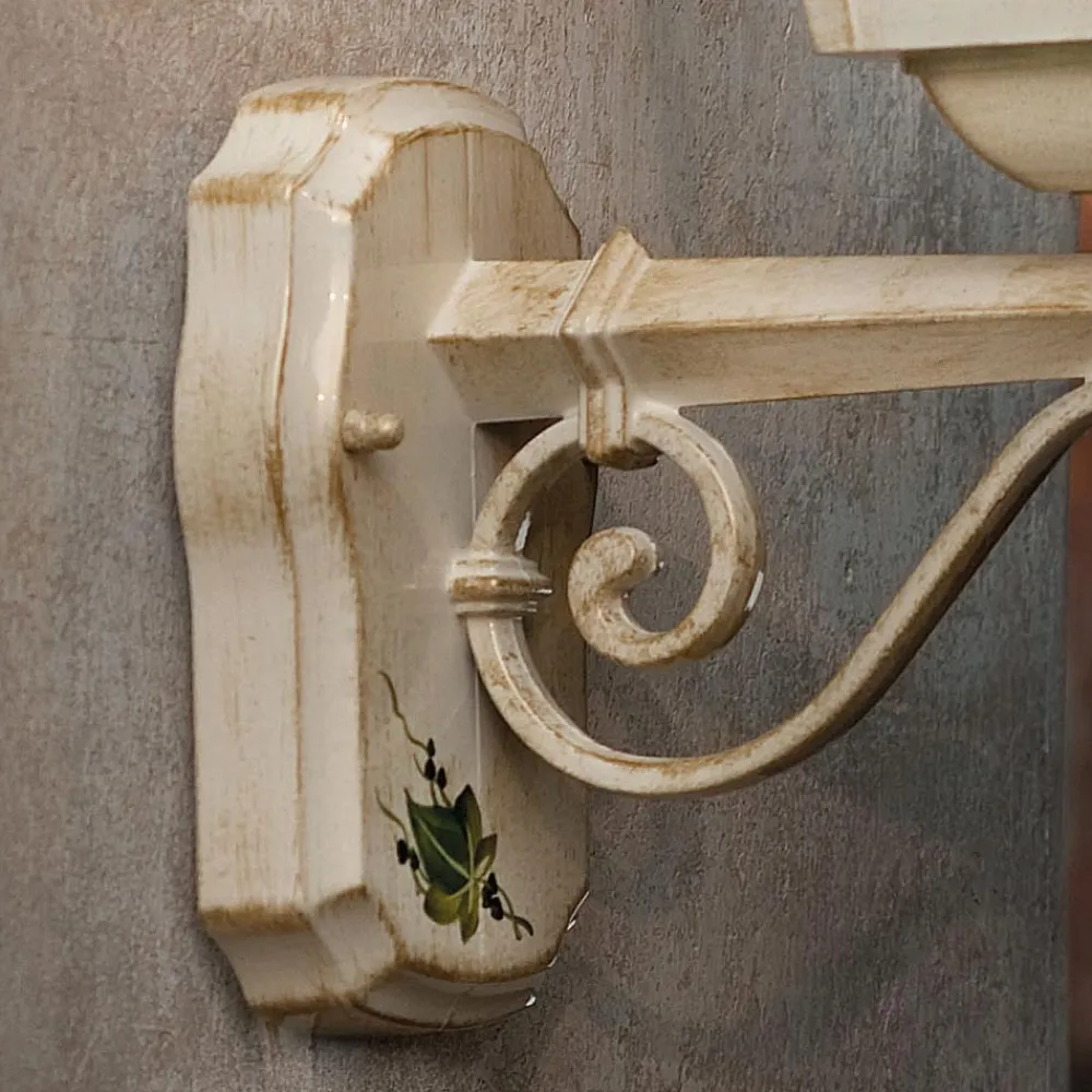Diese Außenwandleuchte besteht vollständig aus weißem Aluminium , das mit handbemaltem Efeu verziert ist, um einen klassischen und harmonischen Stil zwischen Form und Farbe zu erzielen.