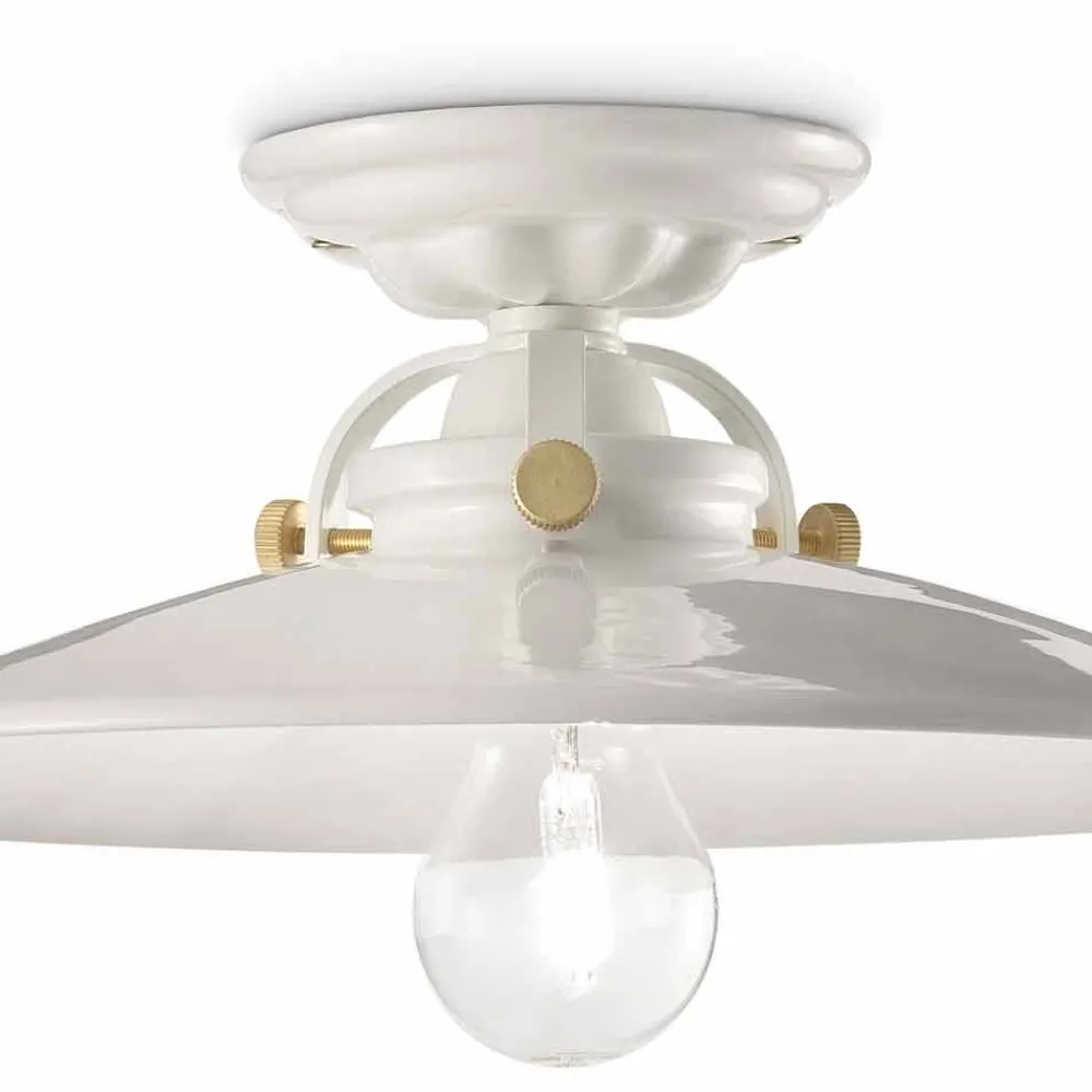 Klare Farben und glänzende Oberflächen bestimmen das Profil dieser fantastischen Deckenleuchte. Louise hat ein aktuelles Design, behält aber die Erinnerung an einen vergangenen Stil. Komplett mit Stützschrauben, die dank ihrer goldenen Oberfläche zu einem wertvollen Detail geworden sind, das ihre Präsenz und Funktion unterstreicht.