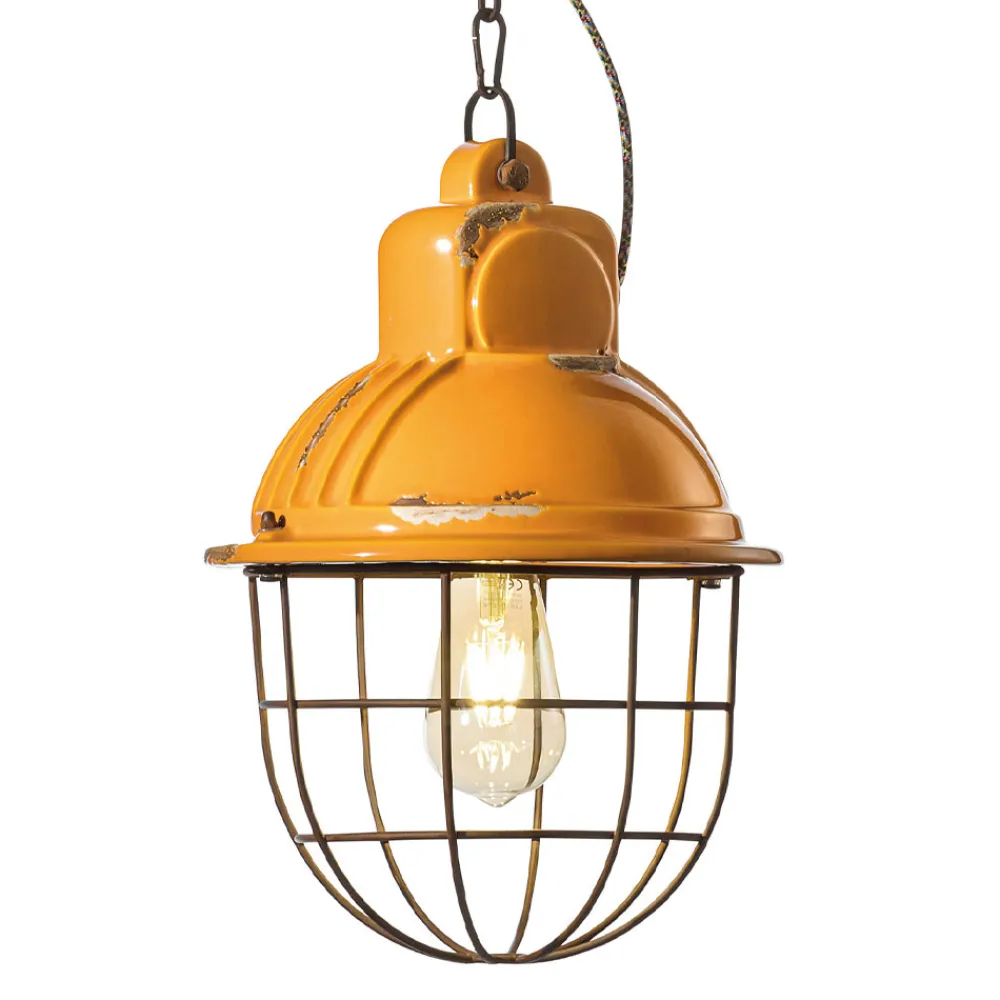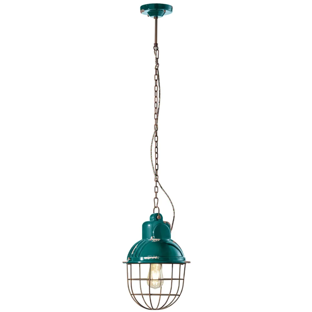 Hängelampe aus Keramik und Eisen mit Gitter, verschiedene industrielle Ausführungen, hergestellt in Italien von Ferroluce.