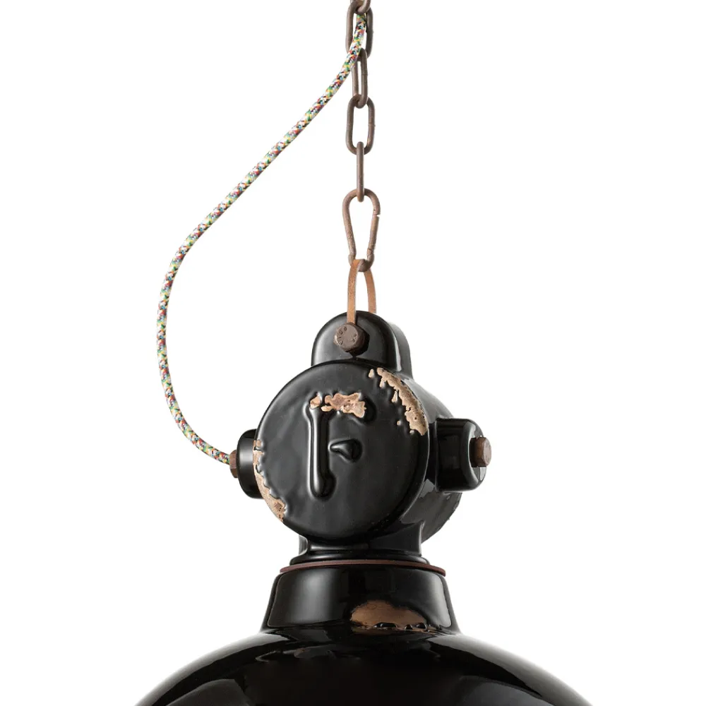 Industrielle Hängelampe aus Keramik und Eisen in verschiedenen Ausführungen, hergestellt in italienischer Handwerkskunst von Ferroluce.
