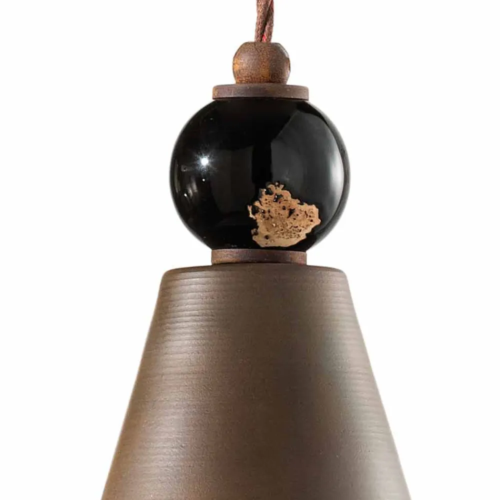 Das Merkmal der Einzigartigkeit liegt in der Verarbeitung und Veredelung der Keramikteile, die so dekoriert sind, als hätte die Zeit ihren Weg gezeichnet. Die Reproduktion der Erosion der Zeit in Kombination mit den glänzenden Oberflächen verleihen dieser Aufhängung diesen zusätzlichen Wert.