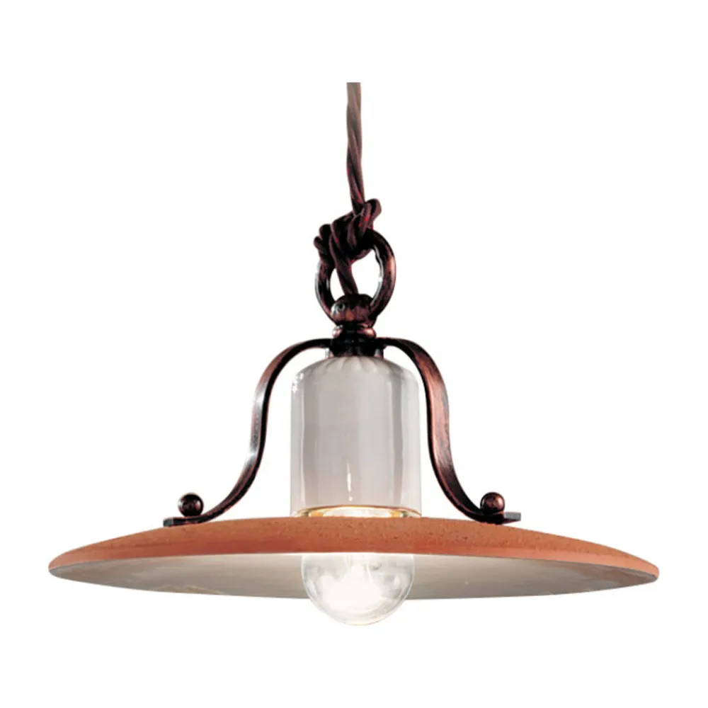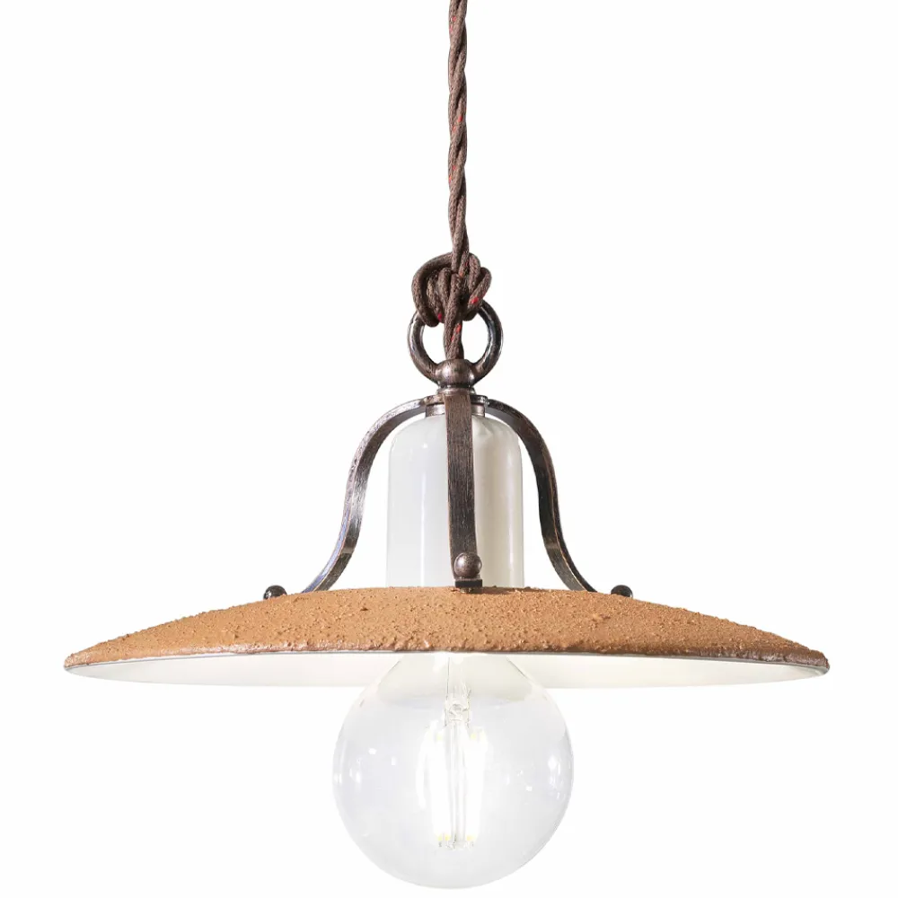 Hängelampe aus Eisen und handgefertigter Rohkeramik, 3 Größen, hergestellt in Italien von Ferroluce.