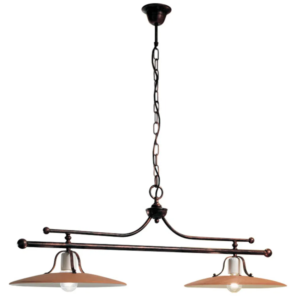 Hängelampe mit 2 Lichtern aus Eisen und handgefertigter Rohkeramik, hergestellt in Italien von Ferroluce.
