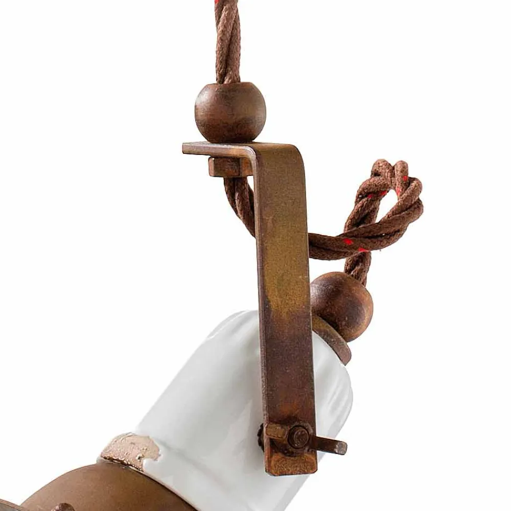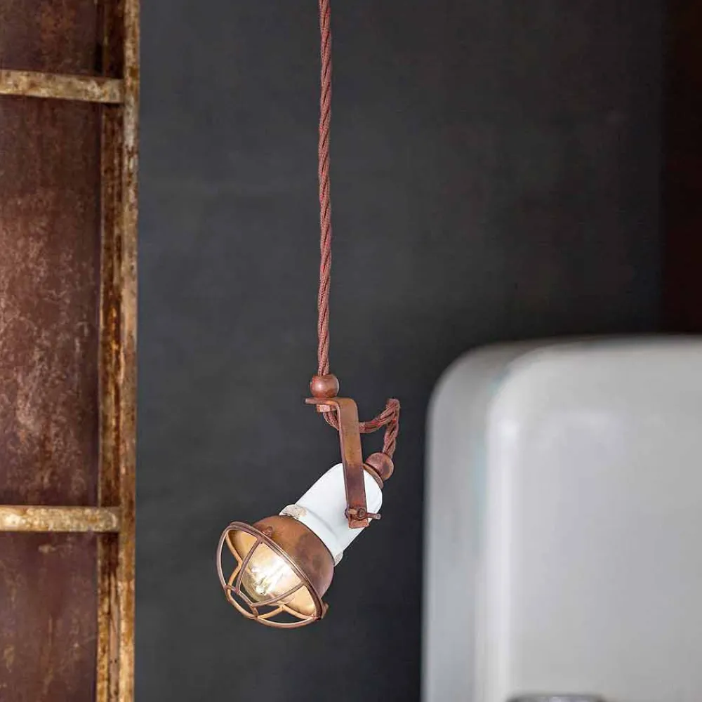 Gerichtetes Licht, Keramik mit Vintage-Oberflächen in perfekter Harmonie mit oxidiertem Metall: eine Pendelleuchte, die in ihrem Stil einzigartig ist, mit einem antiken Geschmack, perfekt für die raffiniertesten Umgebungen.