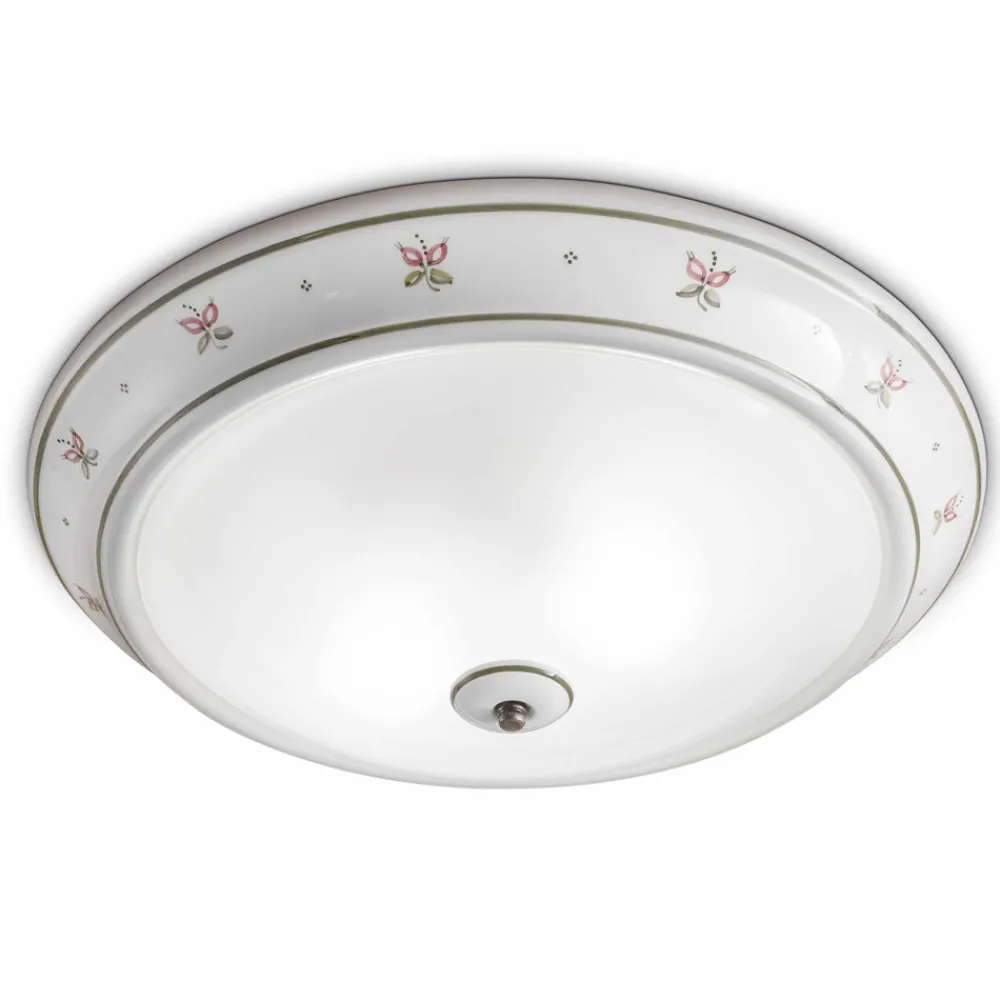 Rustikale Lampe aus glänzend weißer Keramik, komplett von Hand verziert mit Metallstruktur.