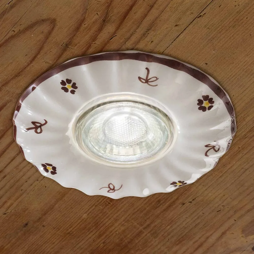 Deckenstrahler aus glänzend weißer Keramik, vollständig von Hand dekoriert.