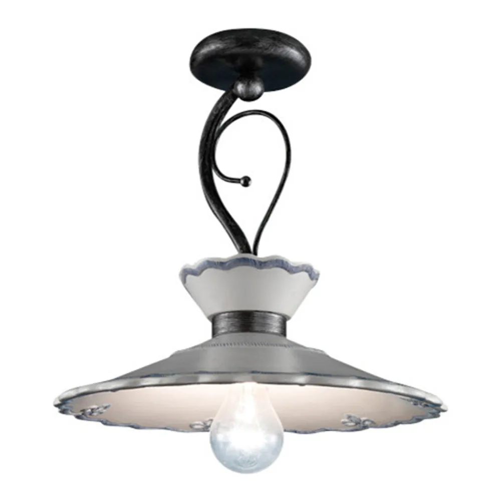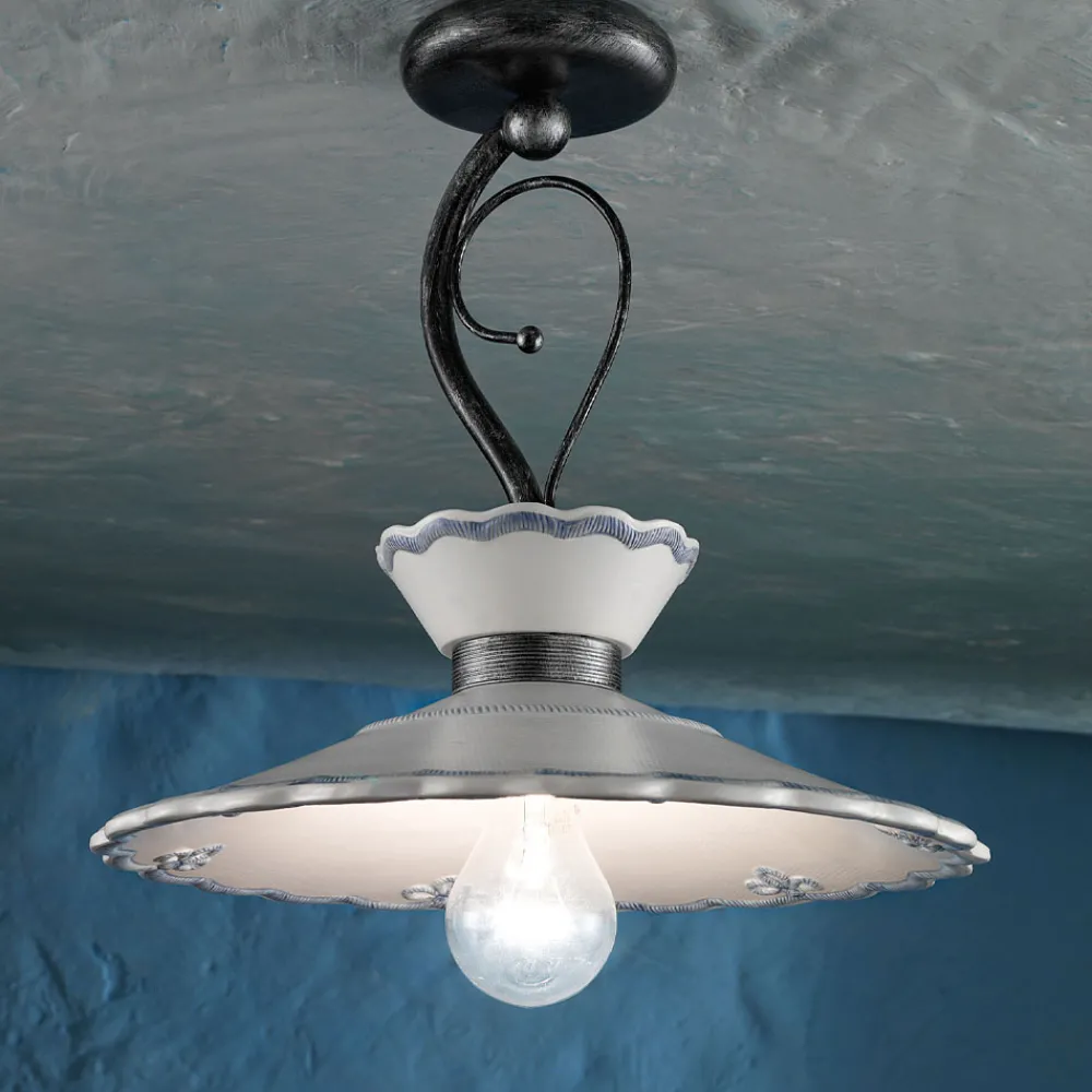 Handgefertigte Deckenlampe aus Metall und Keramik mit Stickereieffekt, 2 Größen, hergestellt in Italien von Ferroluce.