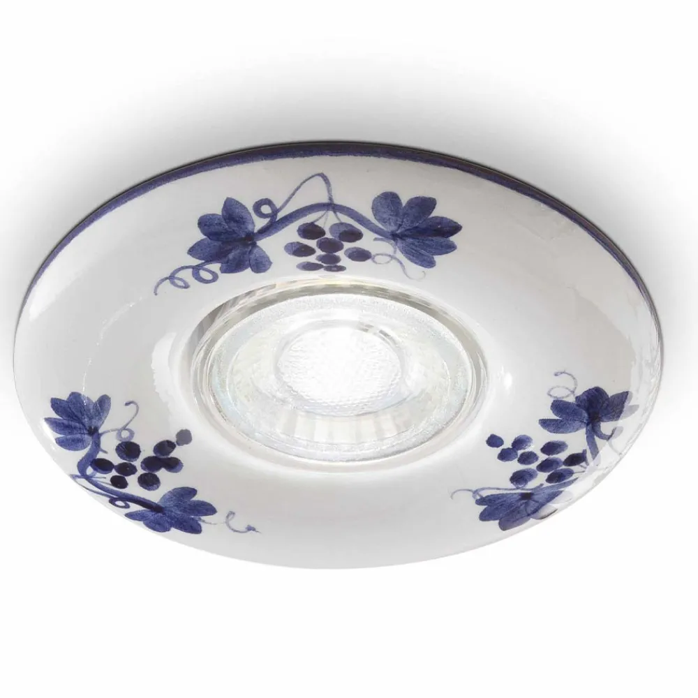 Dieser Einbaustrahler Es besteht vollständig aus handbemalter runder Keramik mit Blumendekorationen , die das Können und die handwerklichen Fähigkeiten der Handwerker unterstreichen.