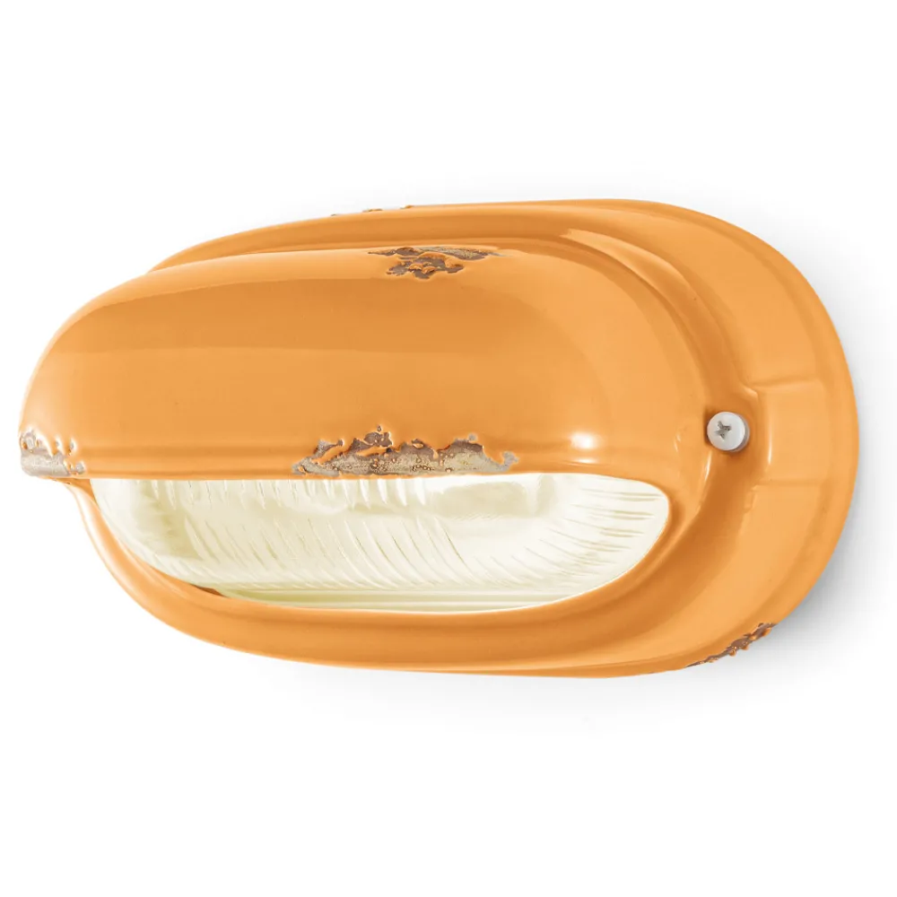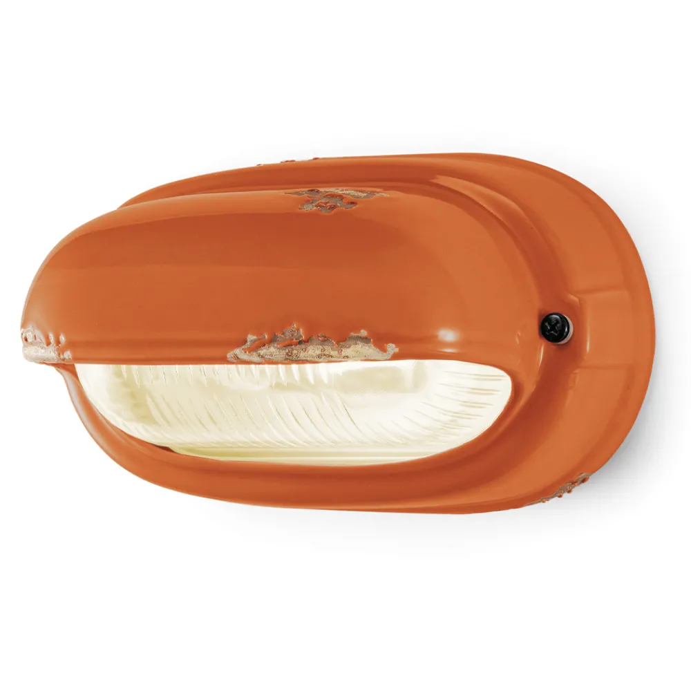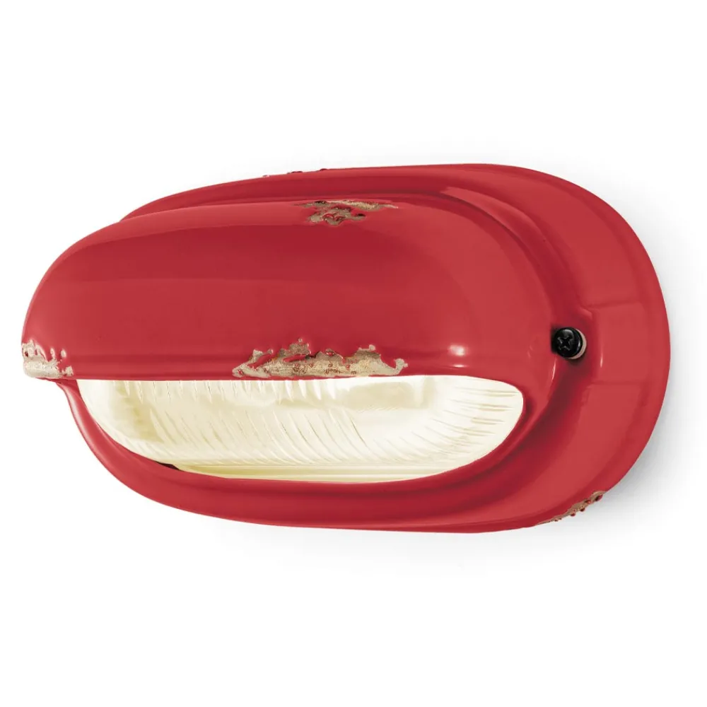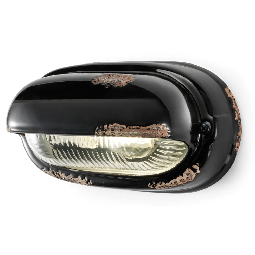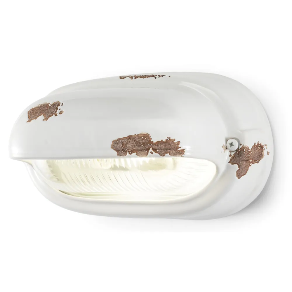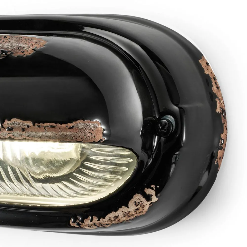 Handgefertigte horizontale Wandleuchte im Industriestil aus Keramik und Metall, hergestellt in Italien von Ferroluce.