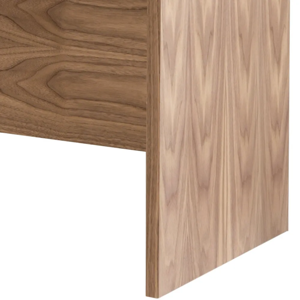 Aus gebogenem Sperrholz mit Canaletto-Nussbaum furniert und Fronteinlagen aus Naturleder.