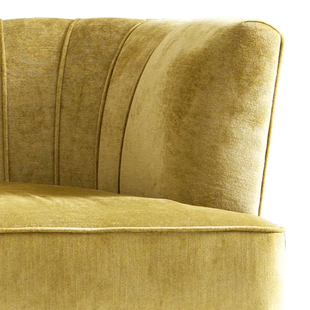 Hergestellt aus massivem Buchenholz, Rücken und Armlehnen; Die Polsterung des gesamten Sofas besteht aus Polyurethanschaum mit unterschiedlicher Dichte.