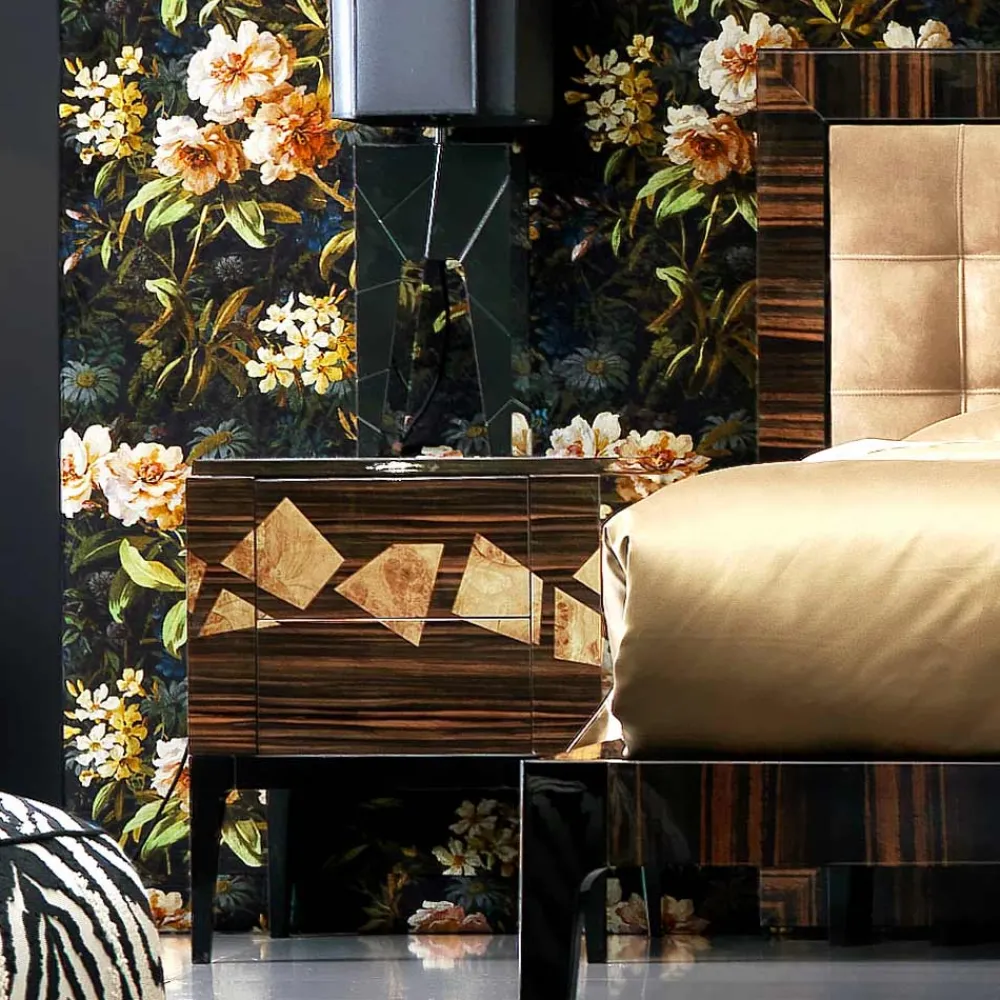 Der Zarafa Nachttisch ist Teil eines Nachtprogramms von Grilli, bei dem jedes Produkt seinen eigenen Reichtum hat, aber in Kombination mit anderen Erzeugnissen wunderschöne Kompositionen ergeben.