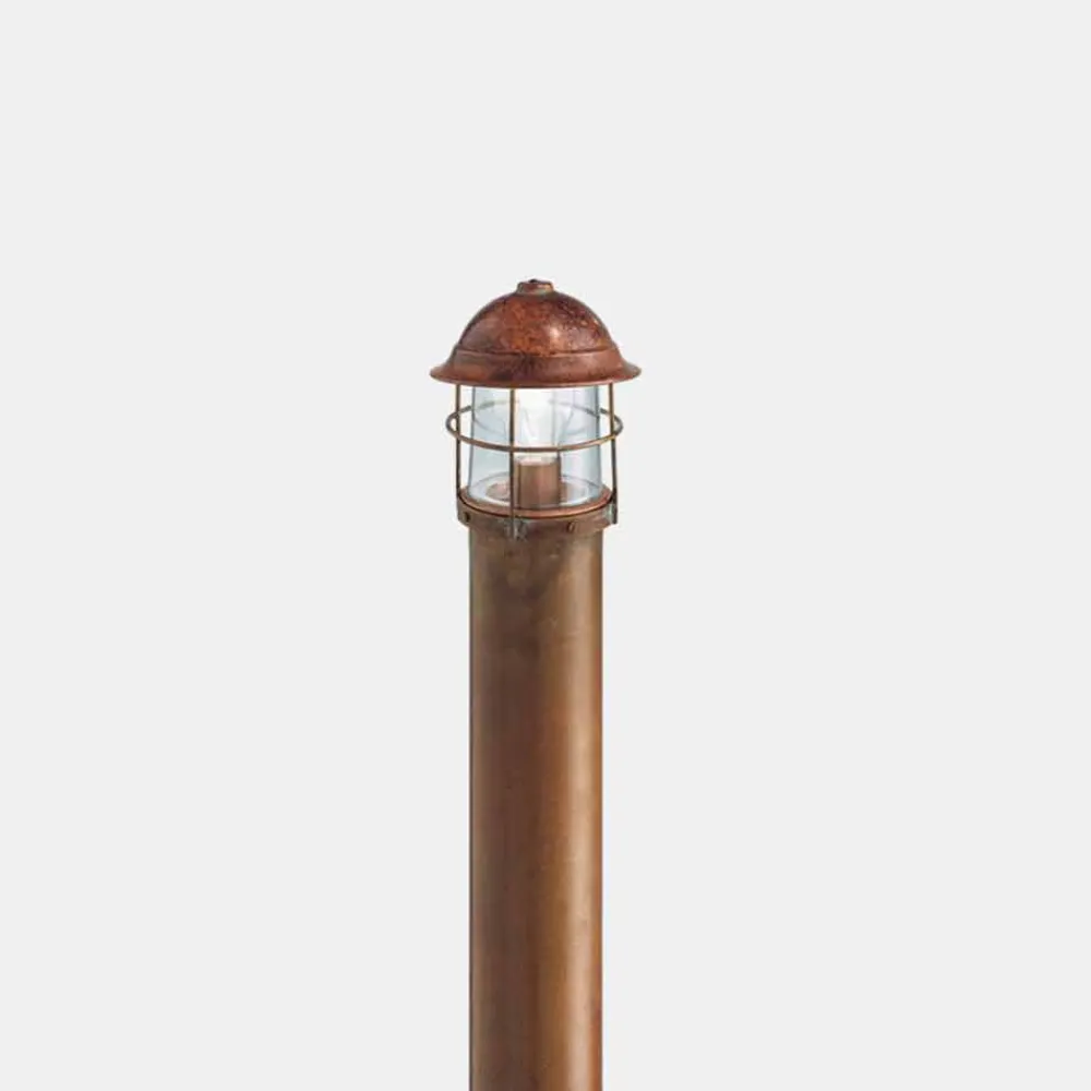 Diese Poller-Garten-Stehlampe zeichnet sich durch ein essentielles und modernes Design aus Messing und antikem Kupfer aus.