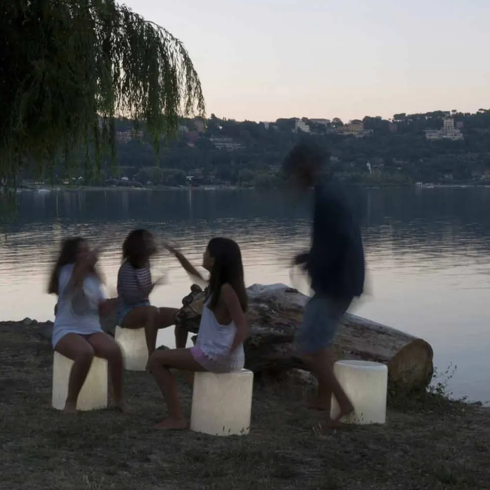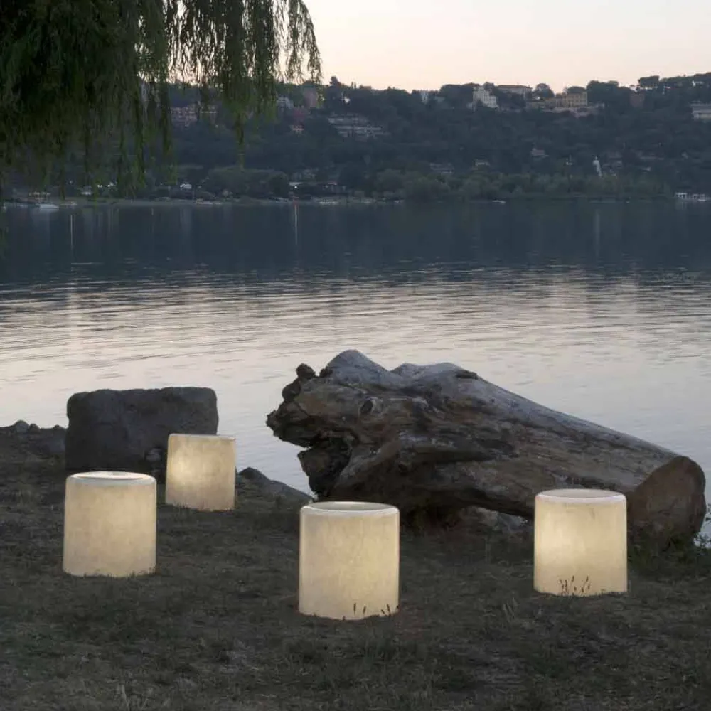 Hergestellt von In-es.artdesign für die Kollektion Out in Laprene und Nebulite: ein innovatives Material aus Harz und Fasern, dessen Adern der Lampe einen besonderen Mond- und Marmoreffekt verleihen.