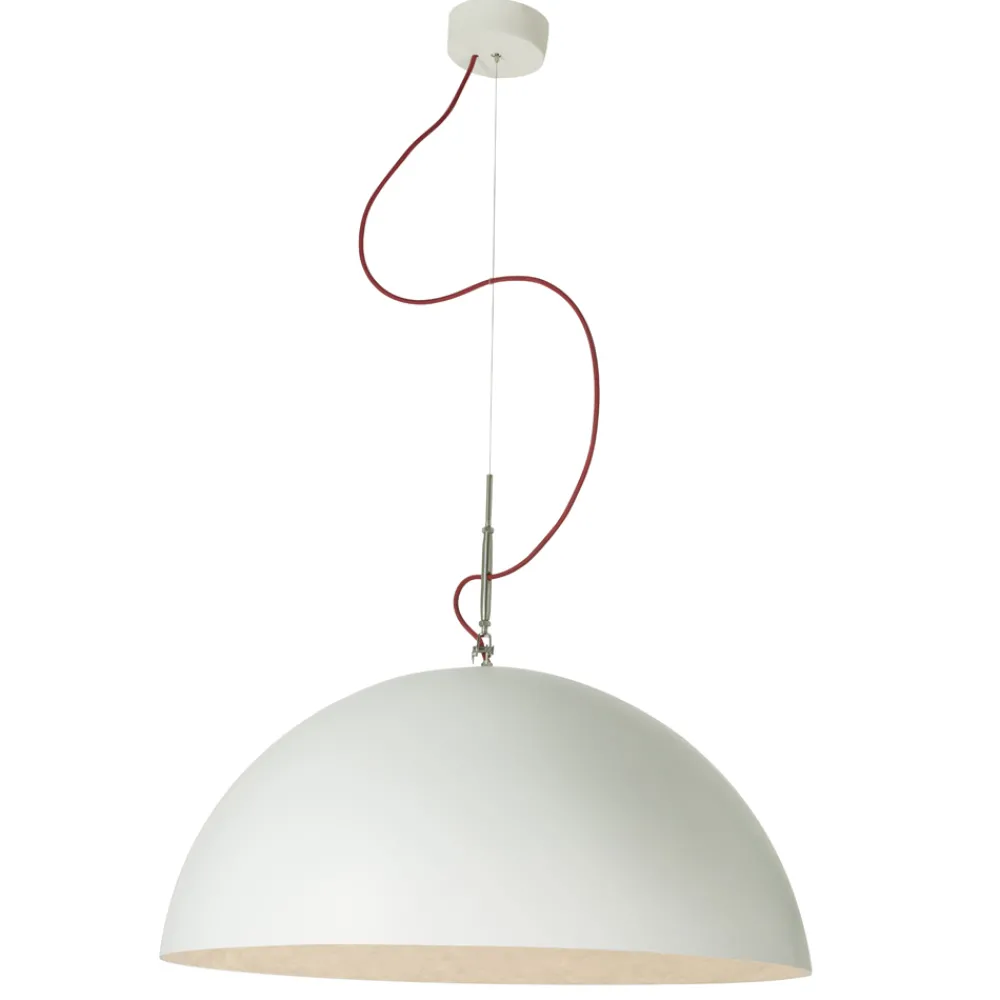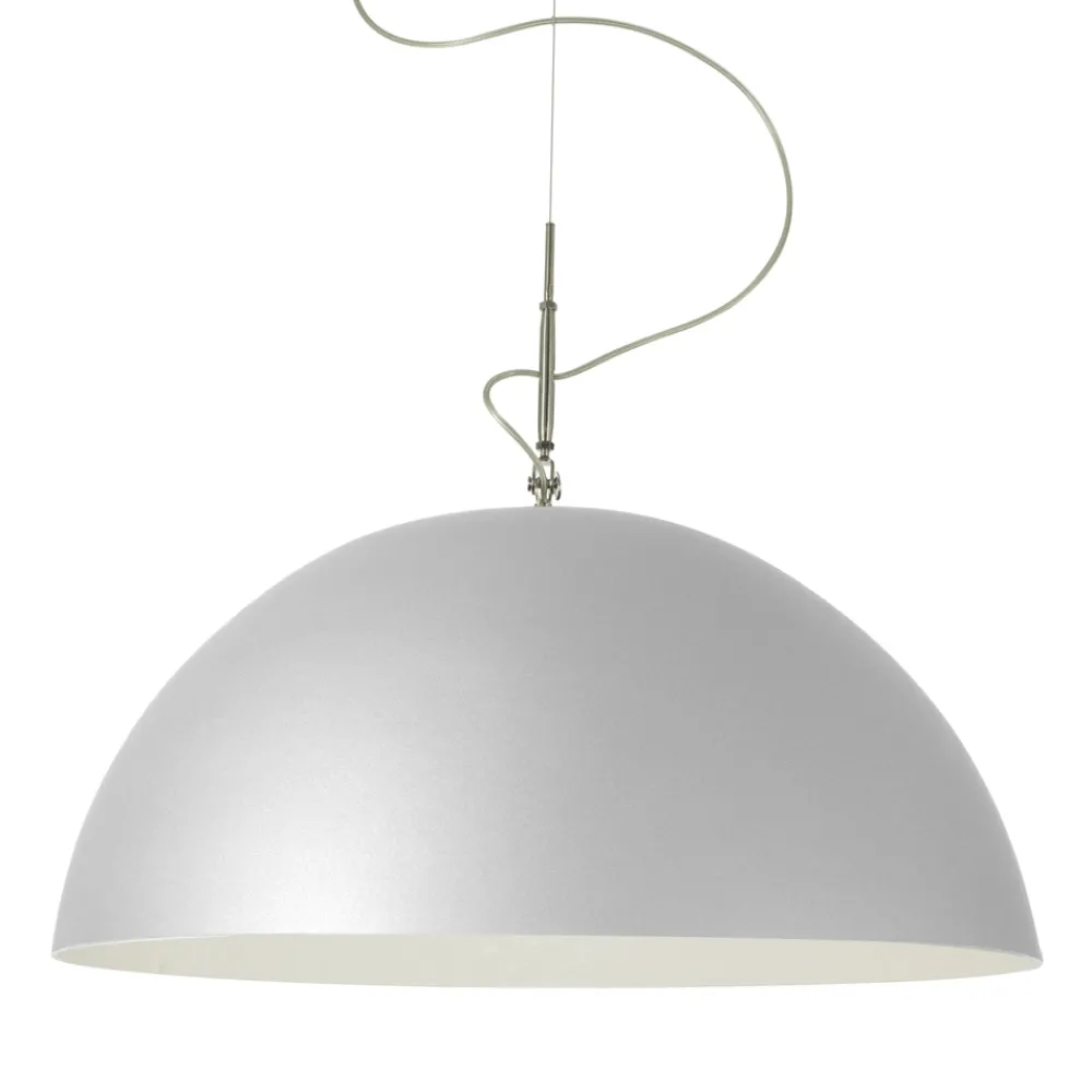 Mit Sorgfalt und Liebe zum Detail hergestellt, um eine magische Mondatmosphäre nachzubilden; ist der innere Teil des Lampenschirms aus Nebulite, einem Material aus Harz und Faser, dessen Adern der Leuchte diesen besonderen Effekt verleihen. Die Außenseite des Lampenschirms in Laprene und Stahl bildet einen interessanten Kontrast zur Innenseite.