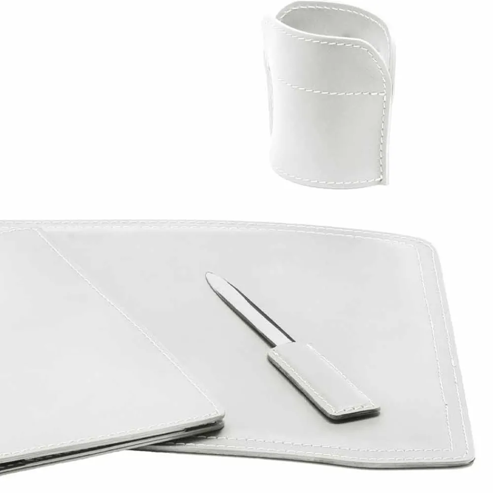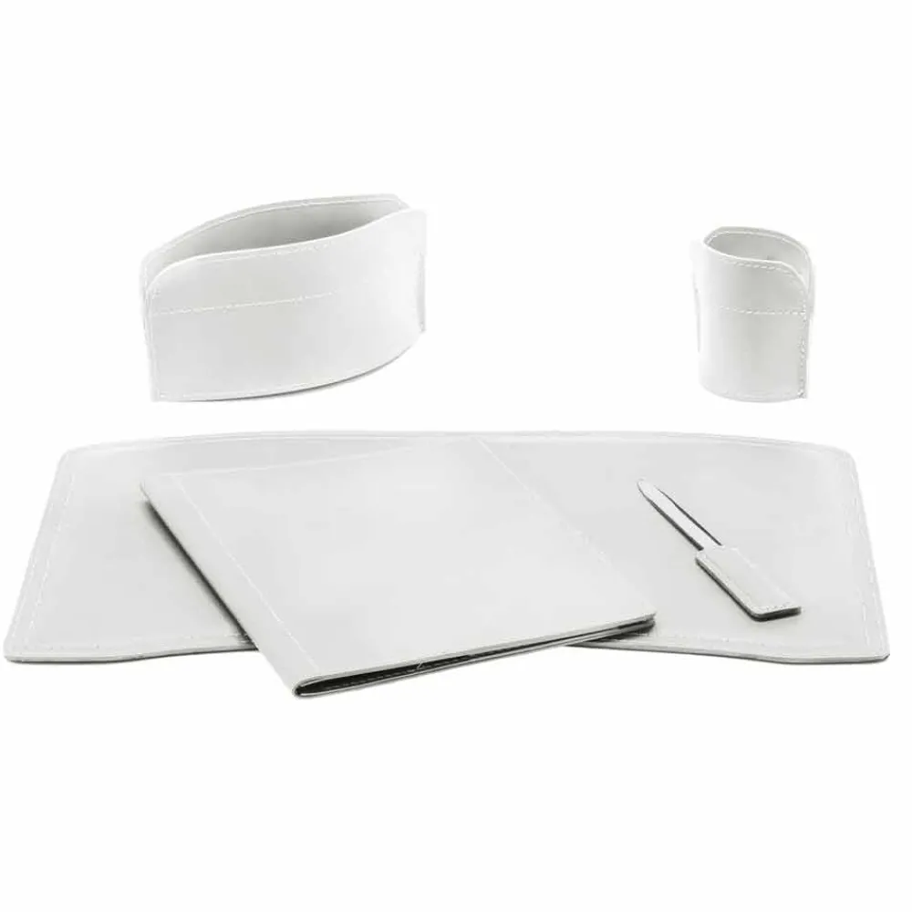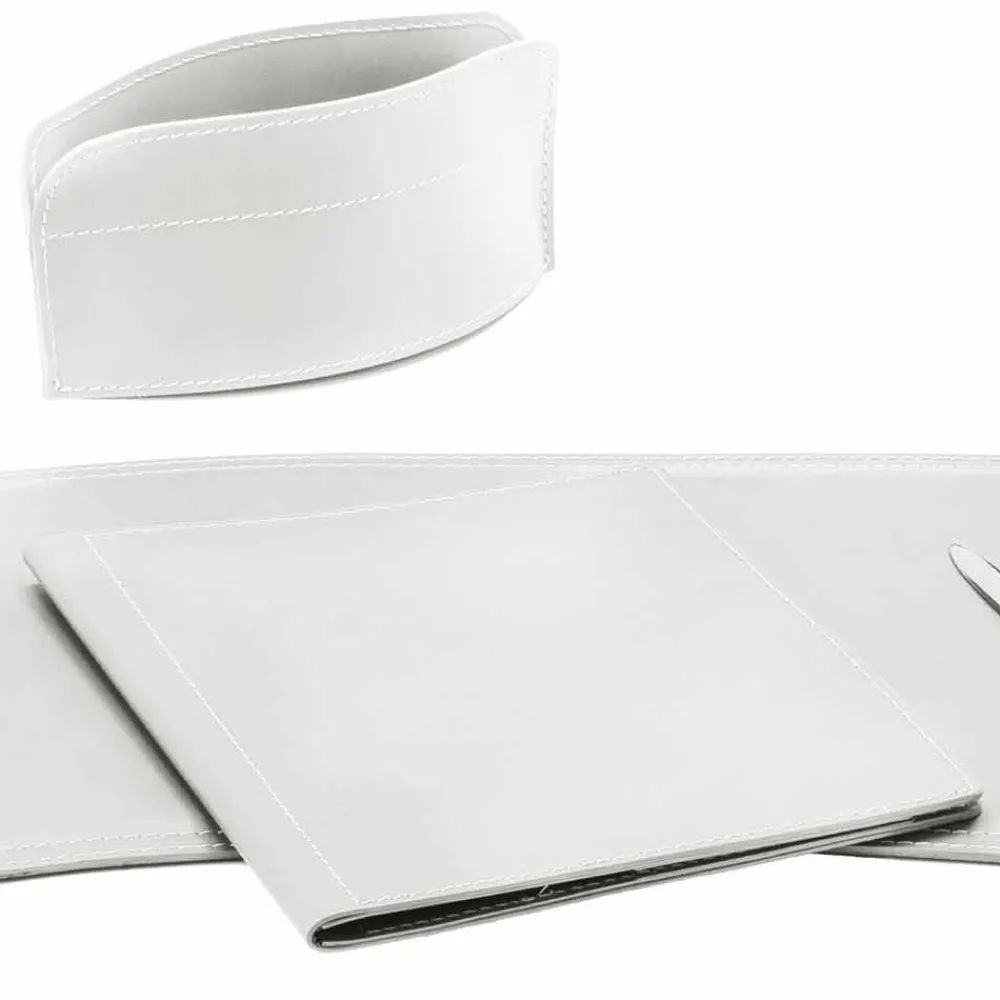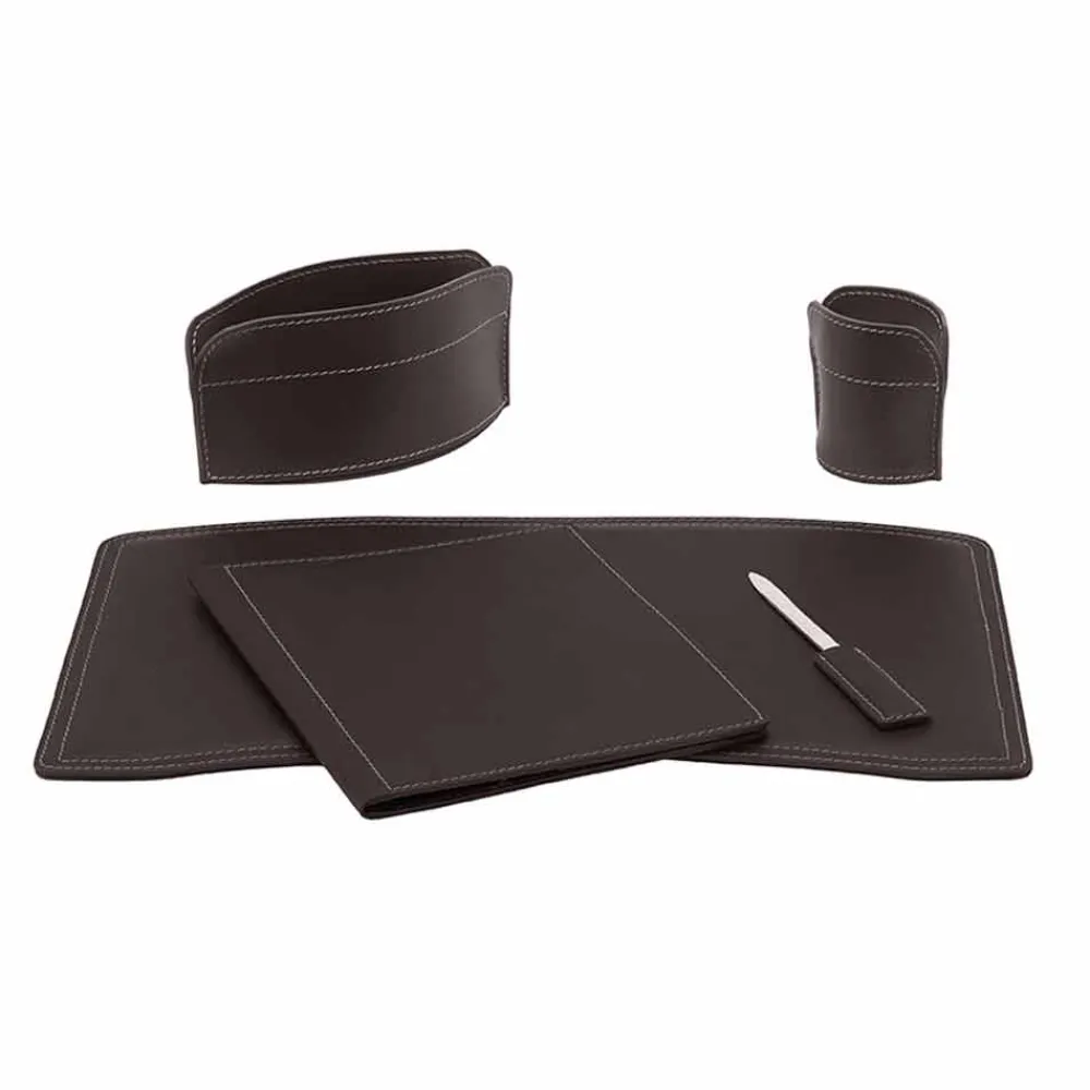 Schreibtischzubehör aus gebundenem Leder, Set bestehend aus 5 Teilen, Made in Italy Brando