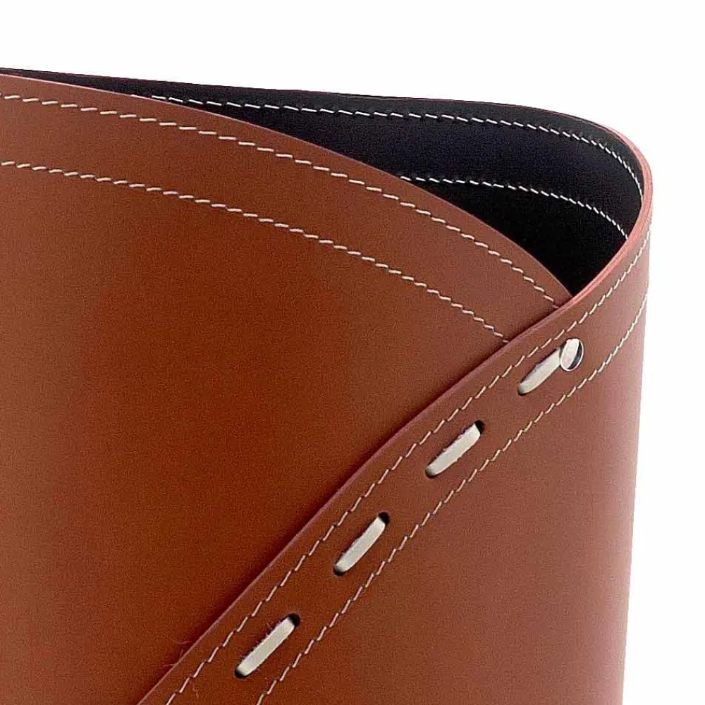 Der Schirmständer Katrina besteht aus regeneriertem Leder, das sowohl die äußeren als auch die inneren Oberflächen bedeckt. Die sichtbare Naht ist ein elegantes Detail, das dazu beiträgt, einer rein funktionalen Ergänzung einen dekorativen Wert zu verleihen.