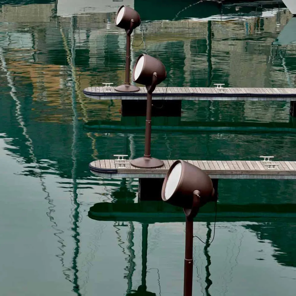 Stehleuchte im Freien aus weißem Polyeasy oder dunkler Perle, hergestellt in Italien.