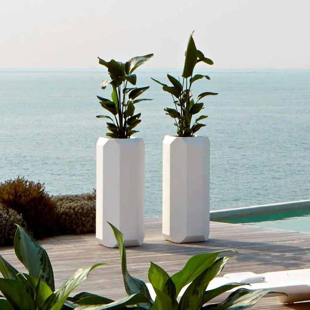 Weiße Poleasy-Vase im Innen- oder Außenbereich in 3 Größen, hergestellt in Italien, 2 Stück.